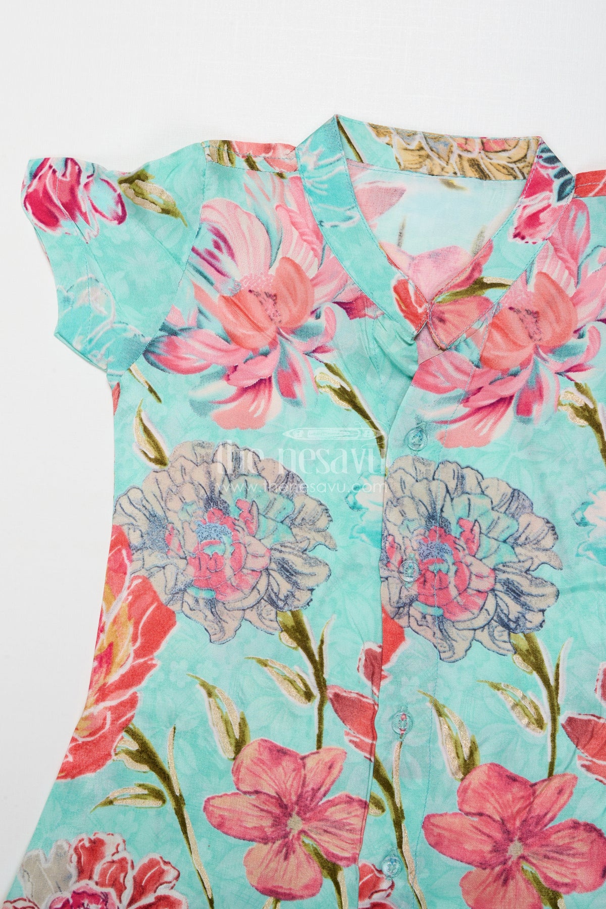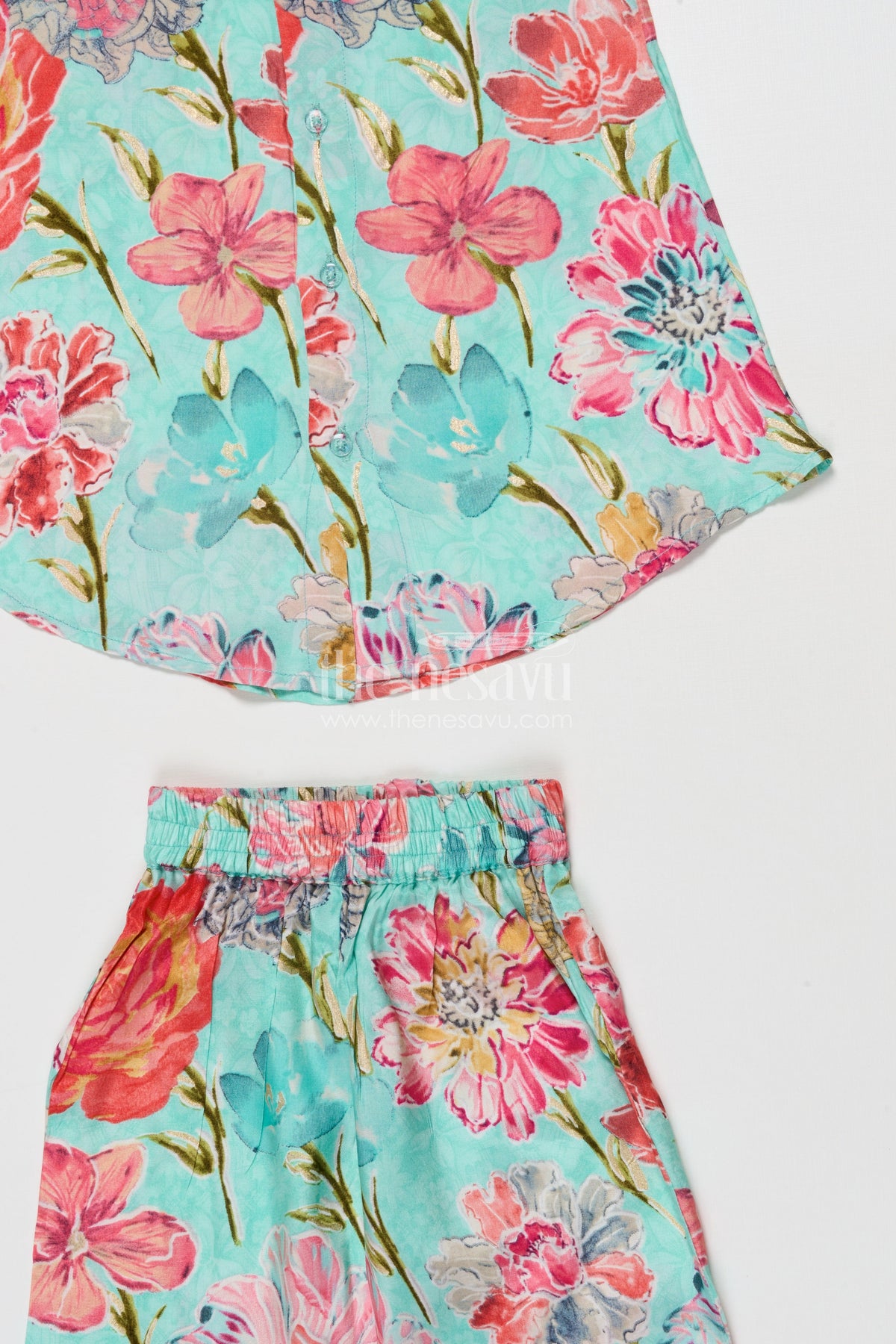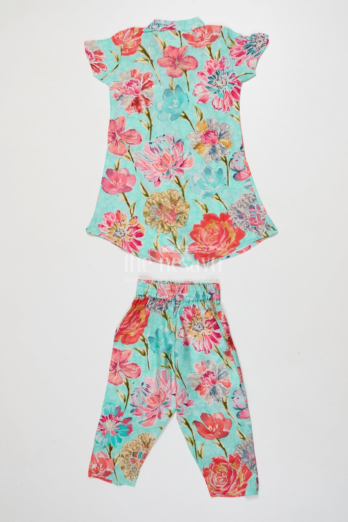 - This baby girl co-ord set features a lightweight crepe fabric with vibrant digital floral prints