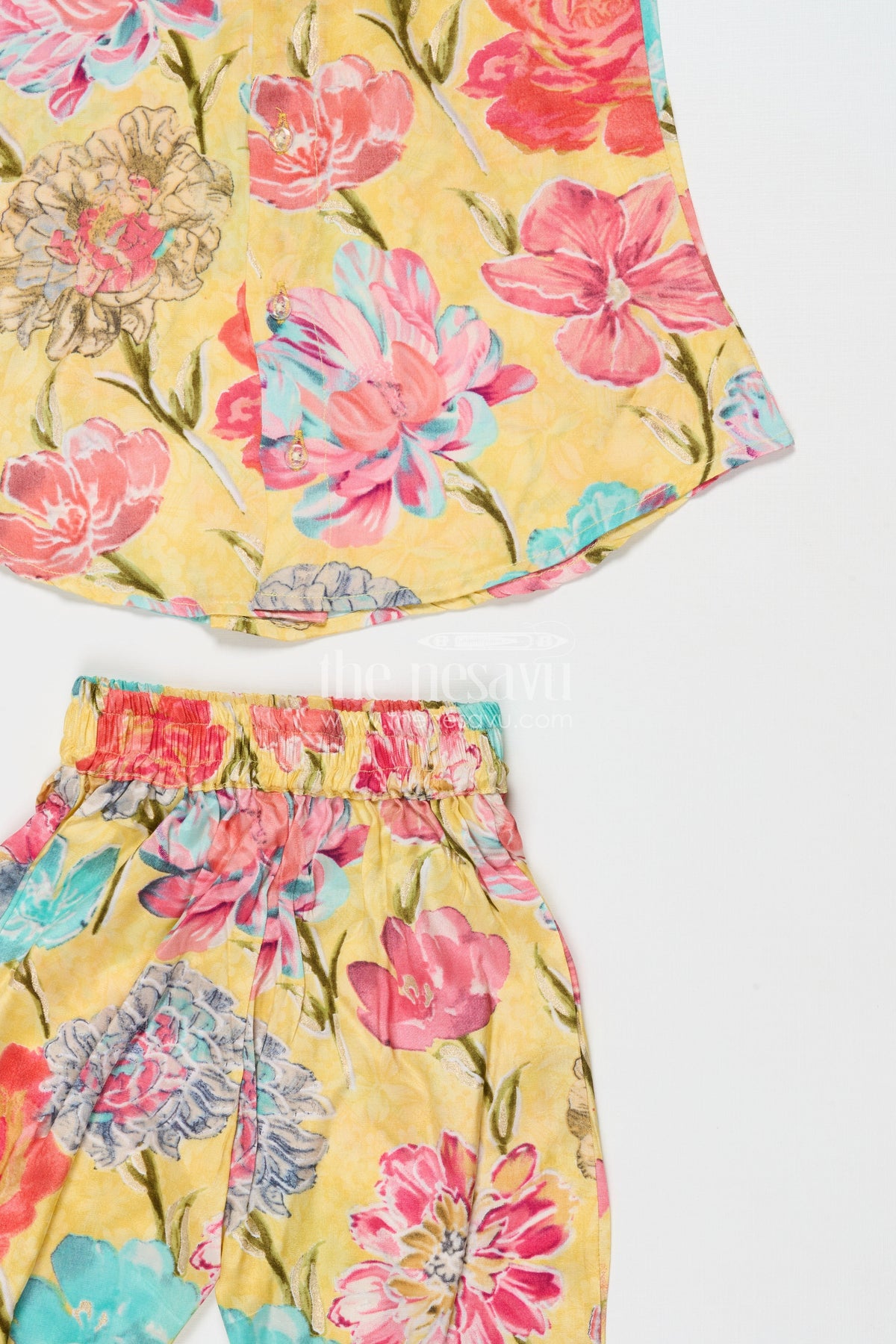 - This toddler girl co-ord set is designed in soft crepe with colorful digital prints