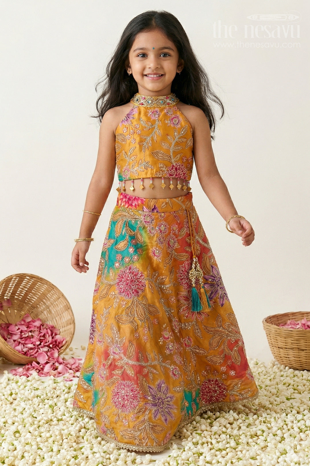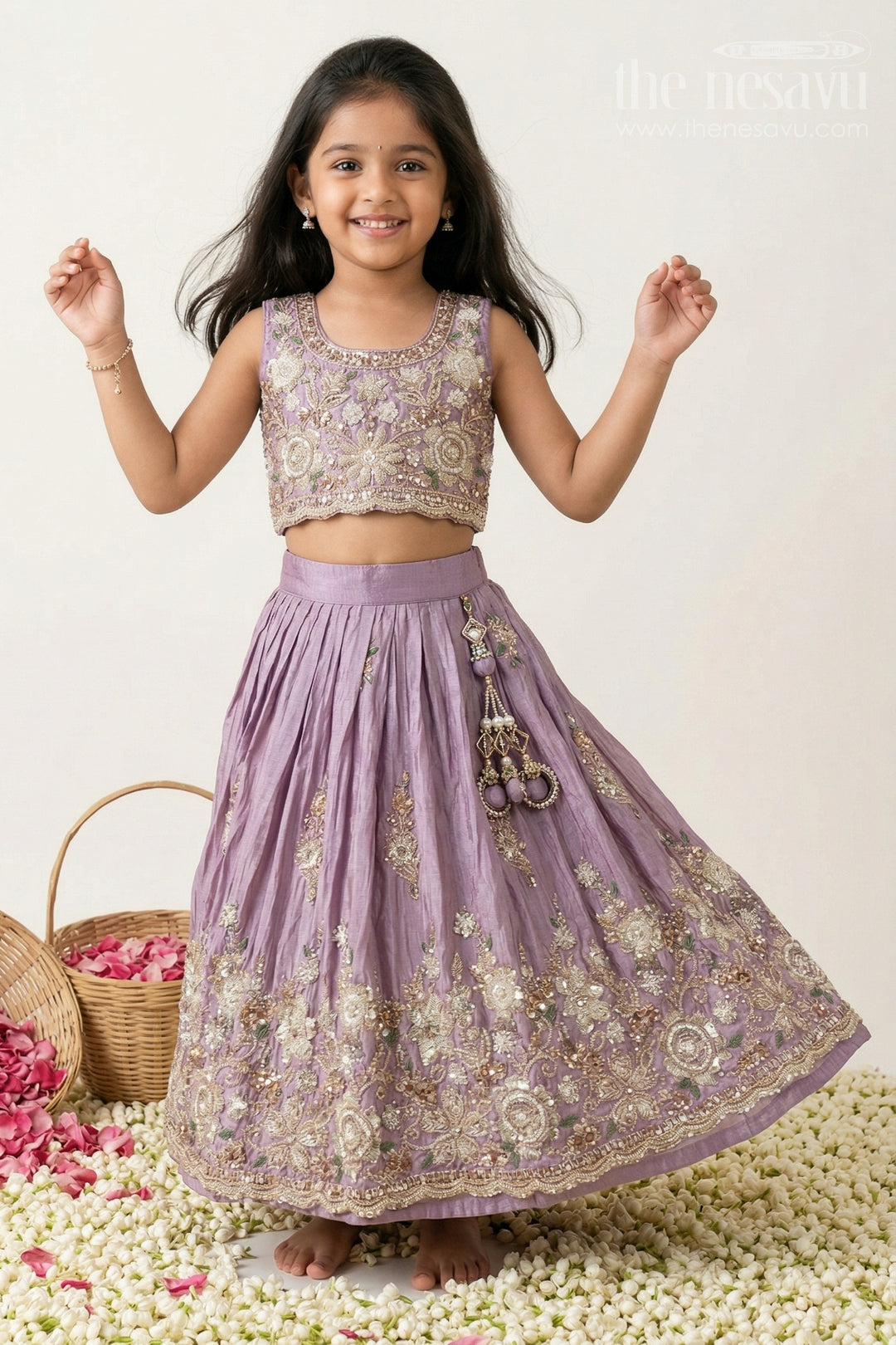 We at The Nesavu are home to the most beautiful Lehengas that are exemplary designed to suit the little sparklers. This festive beauty was initially the staple clothing choice among most people in the northern parts of India. At The Nesavu, the Lehenga and Ghagra cholis are intricately designed with spectacular designs and embroidery works. Also, the Lehengas and the Ghagra cholis at The Nesavu are made with premium quality materials which makes it more loved to be worn. The Lehenga choli and Ghagra choli sets are also available in multiple hues and designs which are also priced at the most reasonable rate. Our Lehenga and Ghagra cholis are specially handcrafted to be the perfect fit for the little sparklers. Pair it up with dazzling accessories for a more regal look.