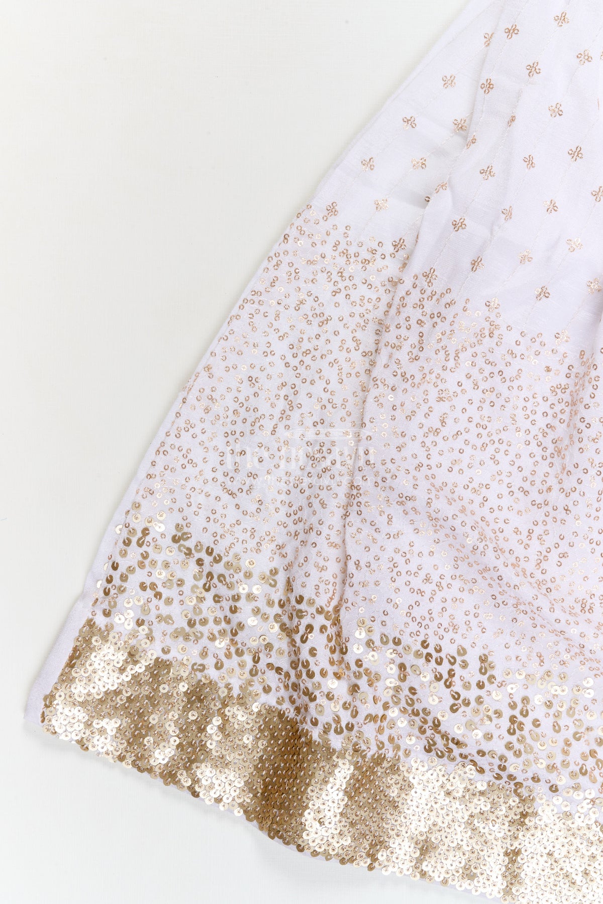 The lehenga is finished with delicate motifs and a wide sequin border for extra festive shine