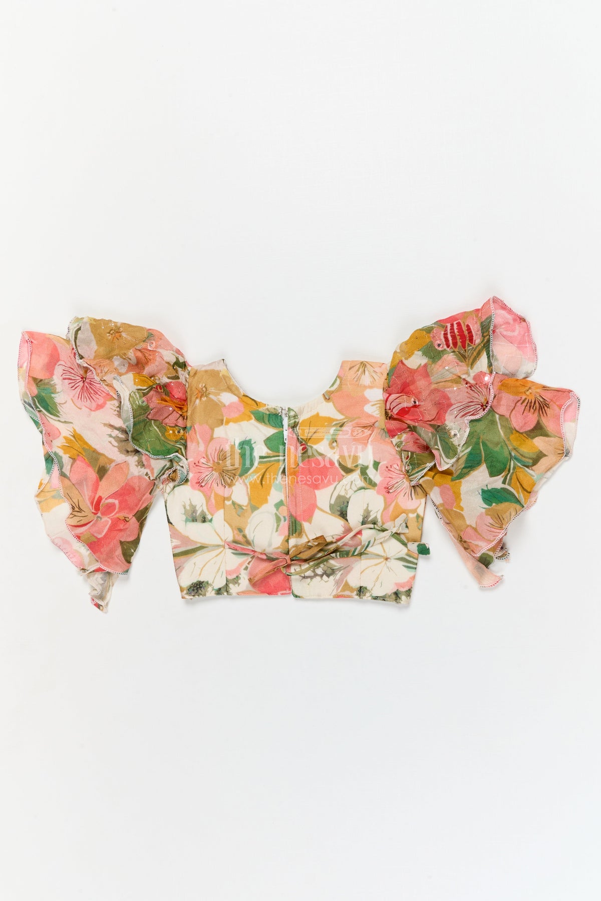 • This girls fancy lehenga set is made from soft Chinon silk with vibrant digital floral print