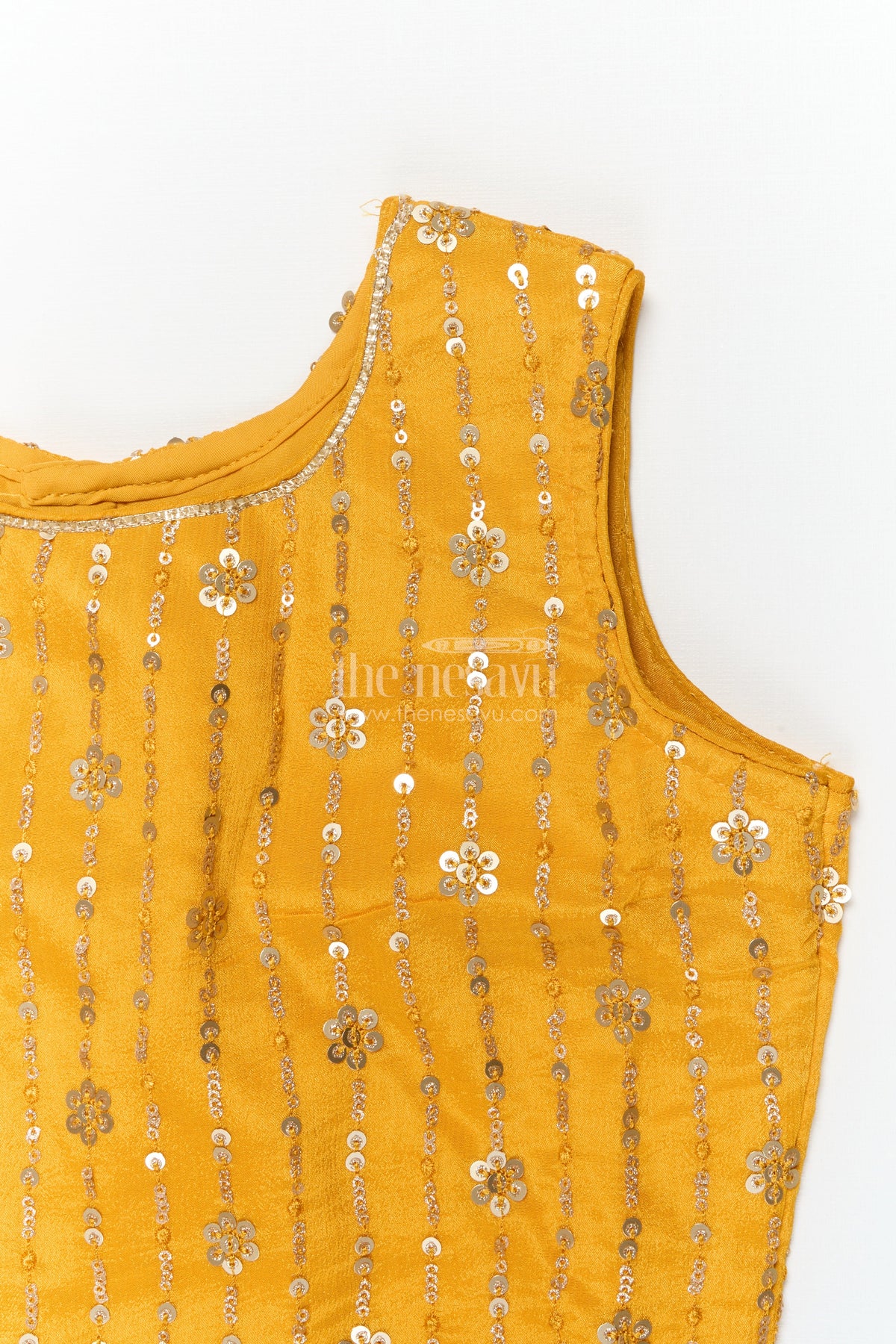 The Nesavu Girls Ethnic Lehenga Girls Tie-dye Effect Lehenga Choli Set for School Functions and Festive Playdates Nesavu 26 (6Y) / Yellow / Chinnon GL864A-26 Nesavu girls Chinon lehenga choli set with tie-dye effect and embroidered hem for festive events