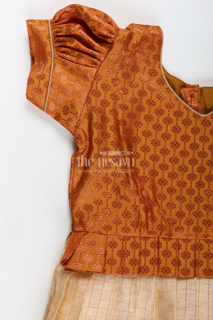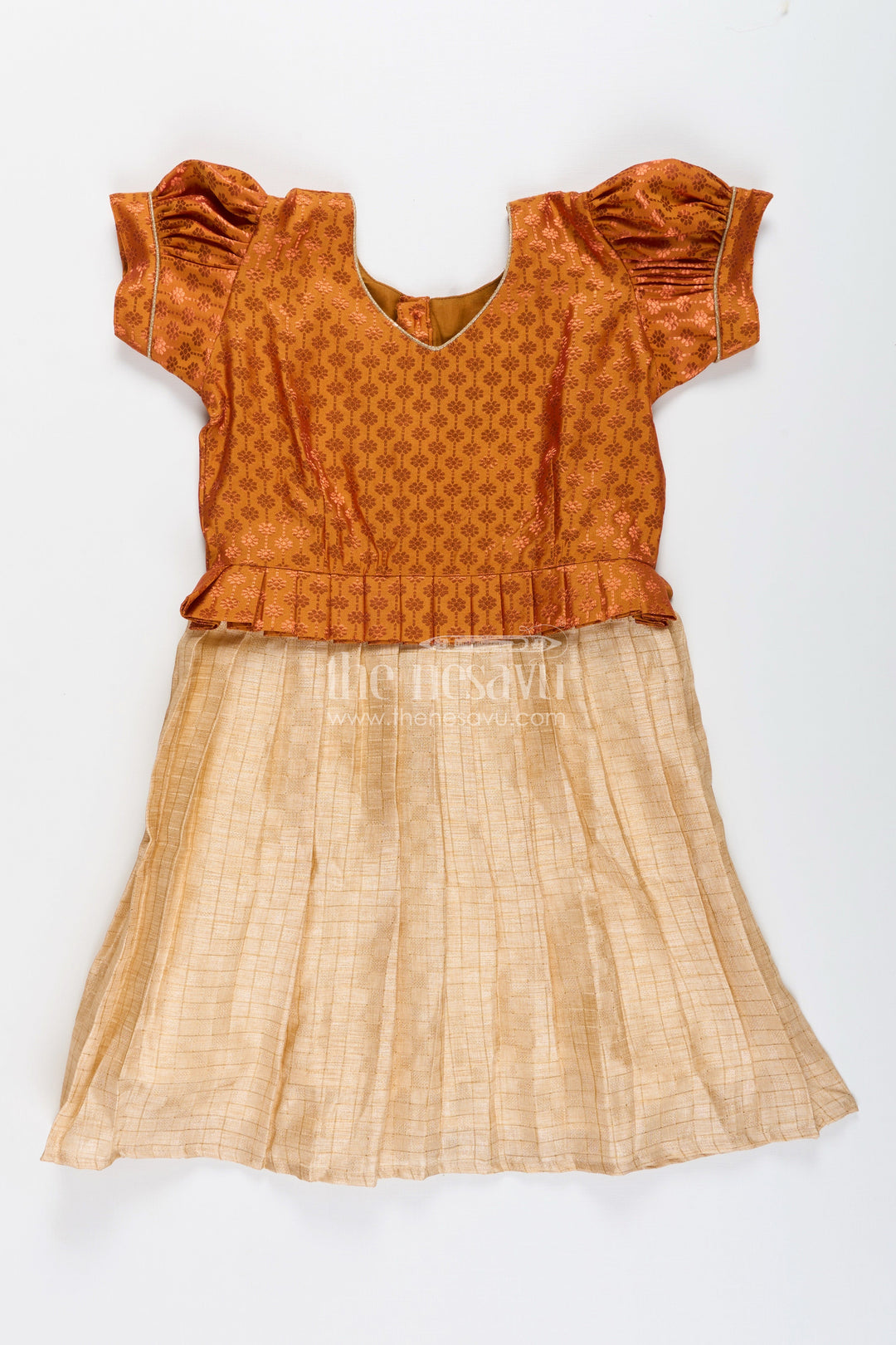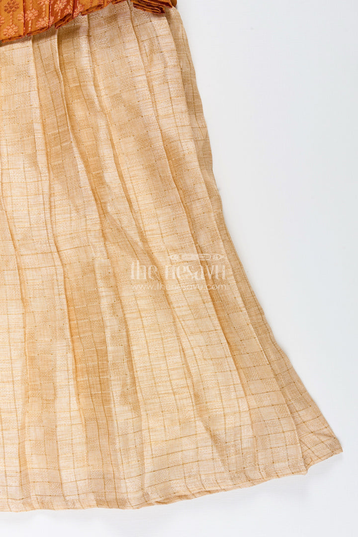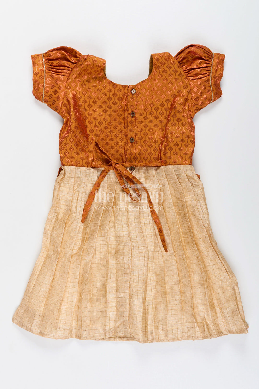 The Nesavu Silk Frock Semi Banarasi Silk Frock for Toddler Girls with Flared Tissue Bottom Nesavu 20 (3Y) / Brown SF1062A-20 Nesavu semi Banarasi silk frock toddler girls tissue flare festive occasions