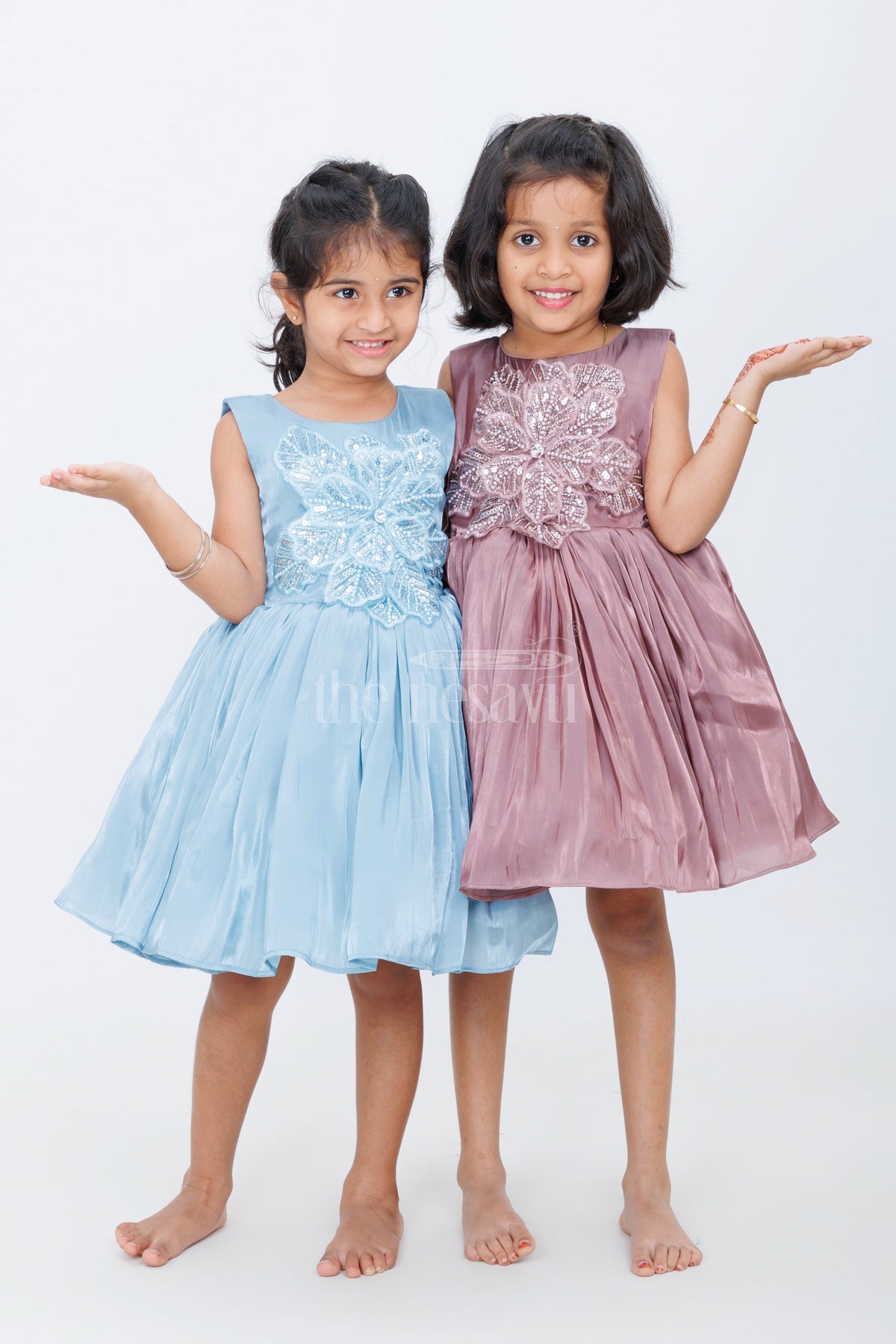 party wear pink frock comes to life in this stunning girls outfit made from delicate glaze organza. The frock features a dazzling, embellished bodice with stone and sequin work and a soft pleated flare that makes every twirl magical. Designed with a flattering fit and a graceful silhouette, this frock is ideal for birthday parties, formal events, and festive photoshoots. The subtle pink hue paired with elegant sparkle gives it a princess-like finish, making it a showstopper in any celebration.