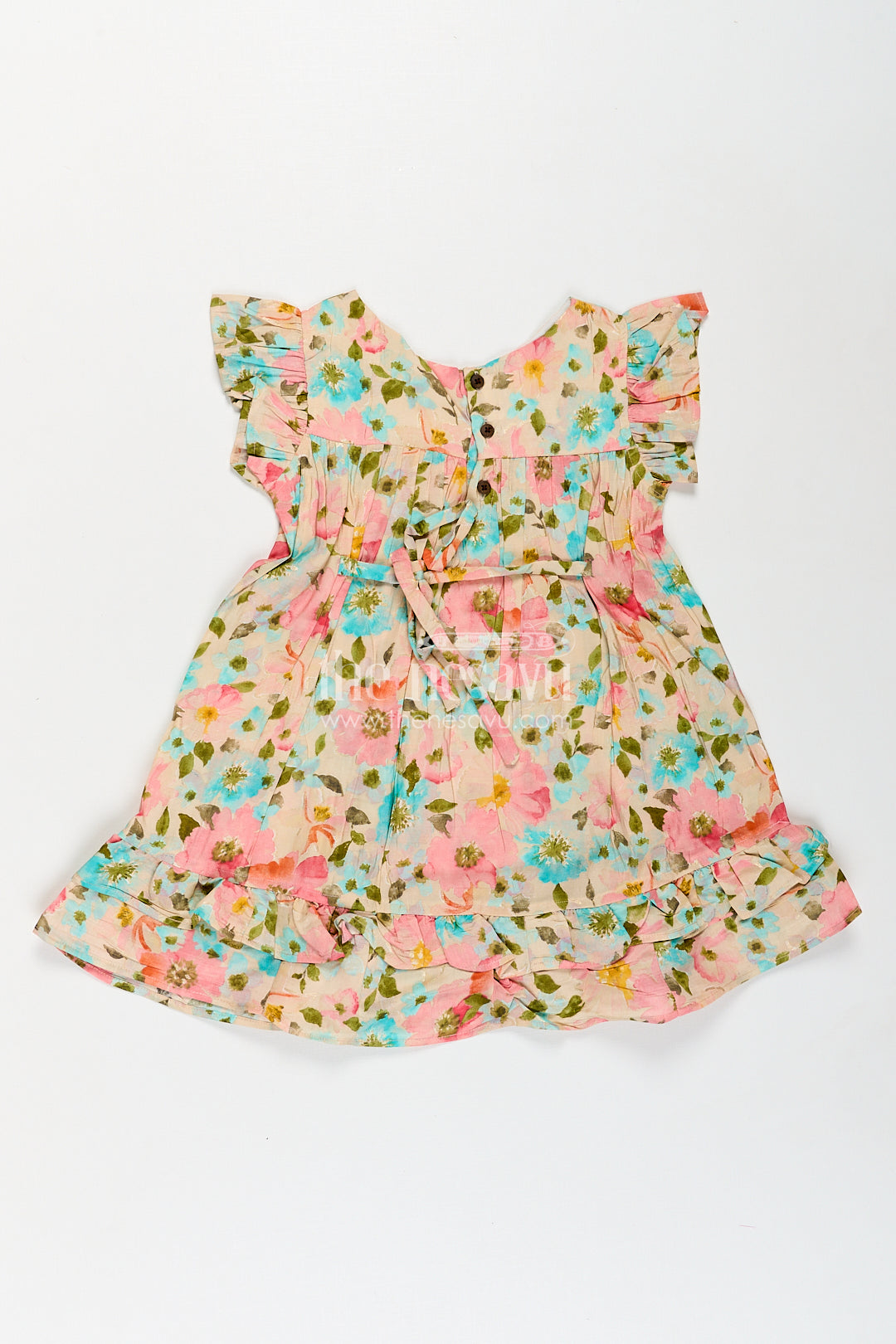 Girls New Style Frock in Modal Silk with Floral Digital Print and Ruffle Sleeves for Everyday Charm