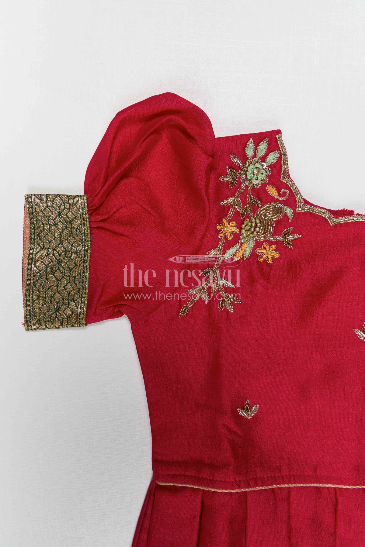 • Design: Traditional pavadai set with flared skirt