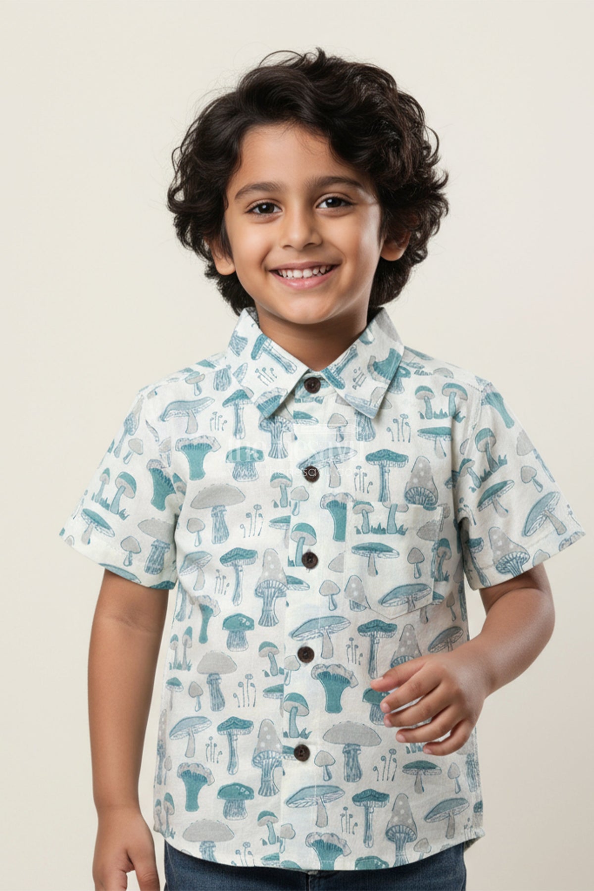 Boys Cotton Shirt with Mushroom Print for Curious Little Adventurers
