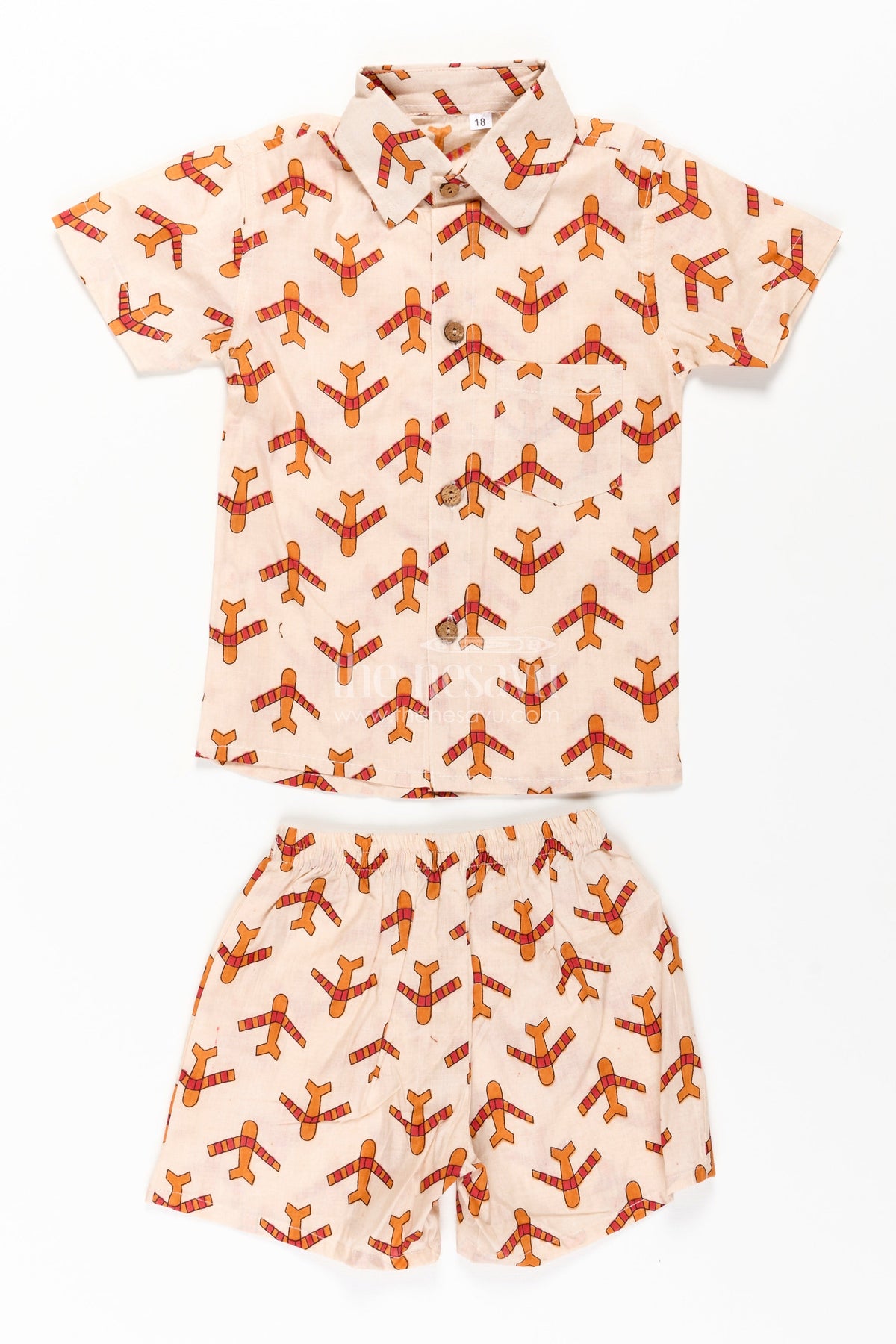 Add fun and color to your child’s wardrobe with this casual dresses boys set featuring digital print animals in rustic shades. The lightweight cotton fabric is soft on the skin and ideal for hot summer days. The set includes a short-sleeve button-down shirt and coordinating shorts with an elastic waistband, allowing your little one to play, explore, and move freely. With its playful animal motif and practical design, this set is perfect for everyday outings or casual events.