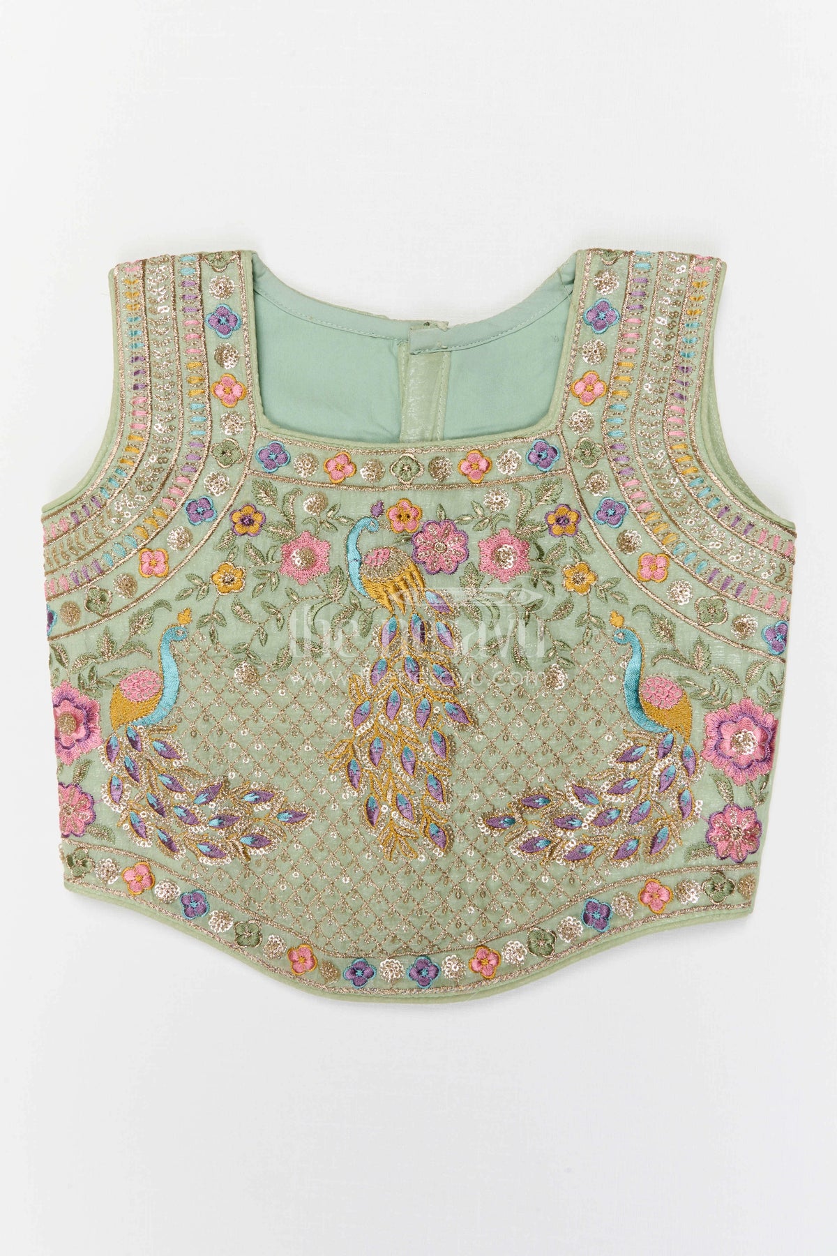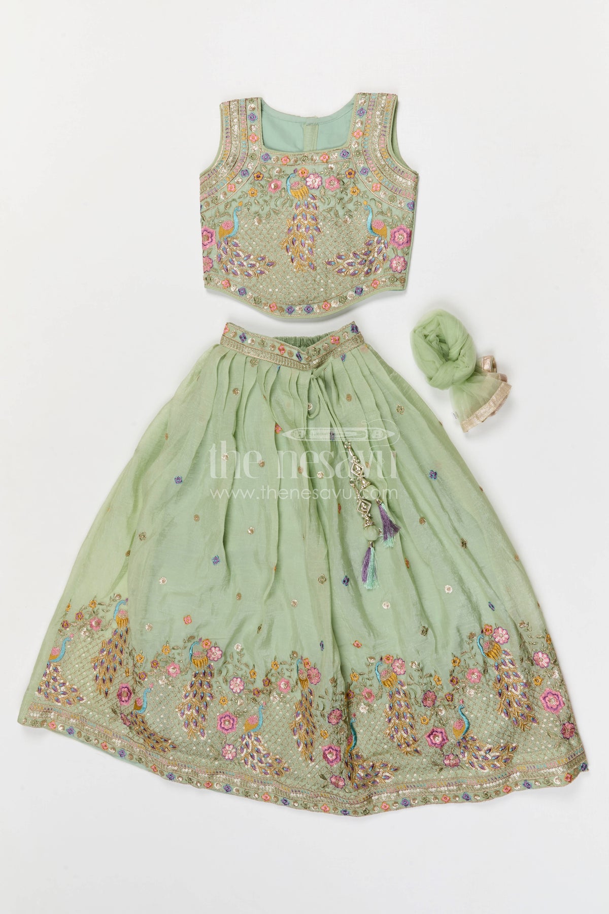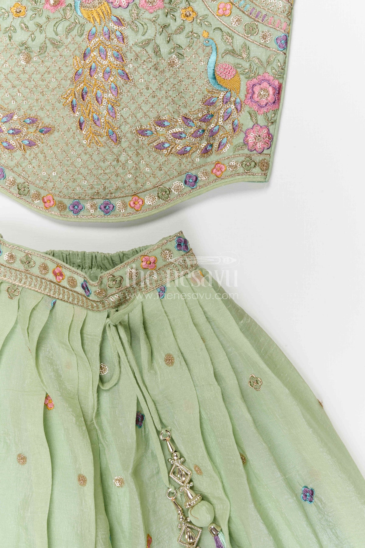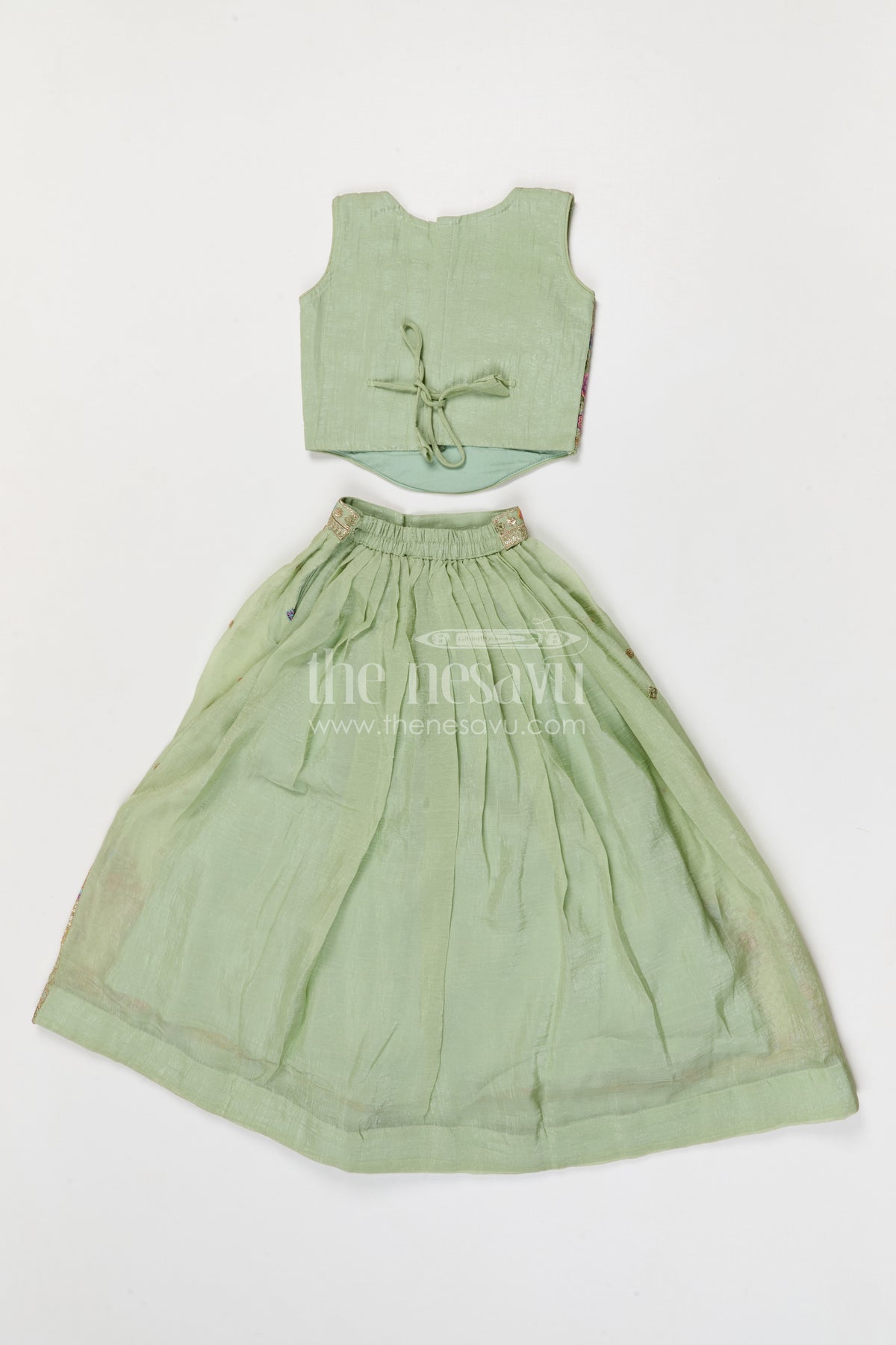 The Nesavu Girls Fancy Lehenga Girls Party Lehenga for Weddings and Party Date Nesavu 16 (1Y) / Green / Georgette GL885A-16 Nesavu girls crushed georgette lehenga for weddings and festive occasions with embroidered designer yoke