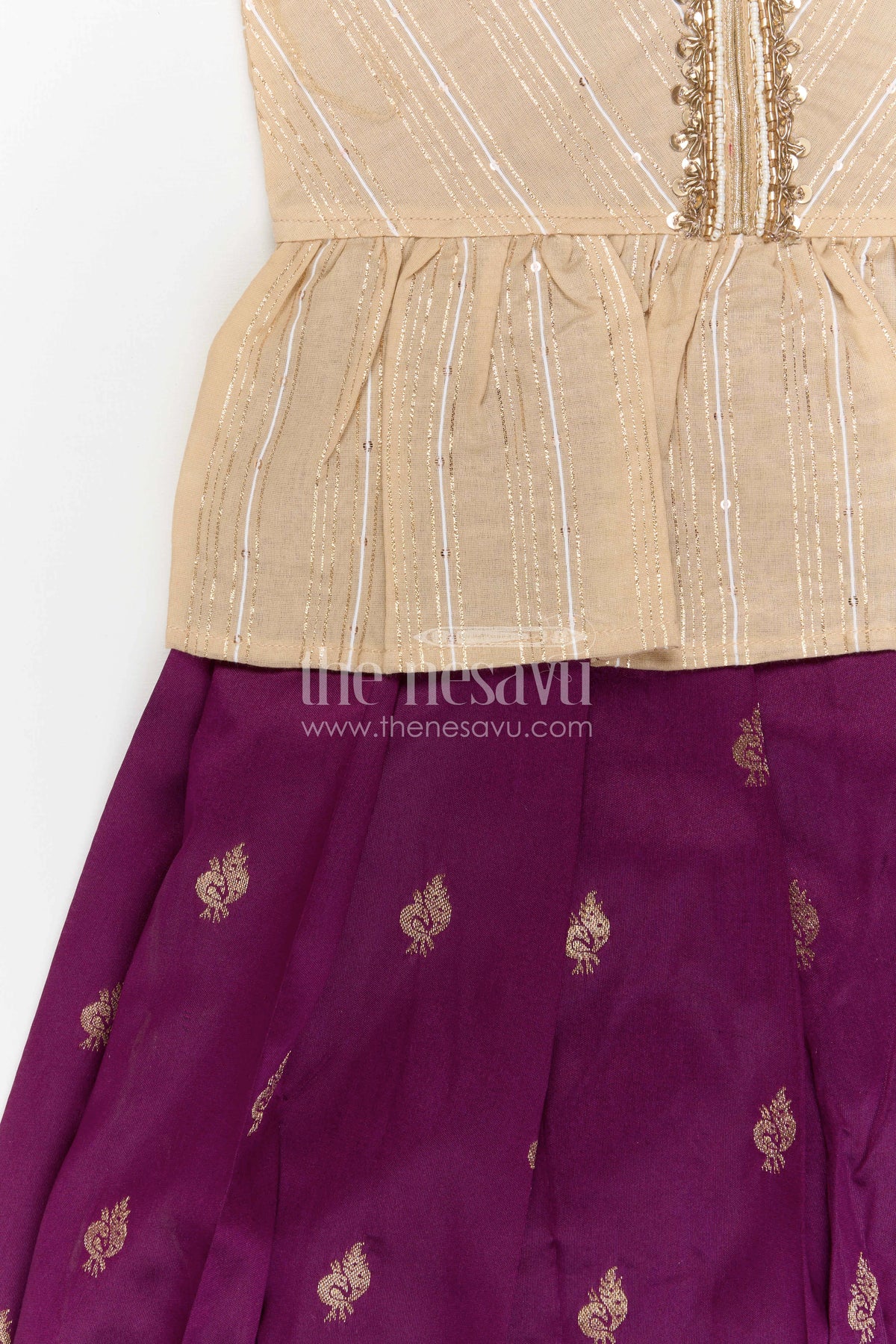 • The blouse features a peplum style silhouette with delicate zari detailing that enhances the festive charm