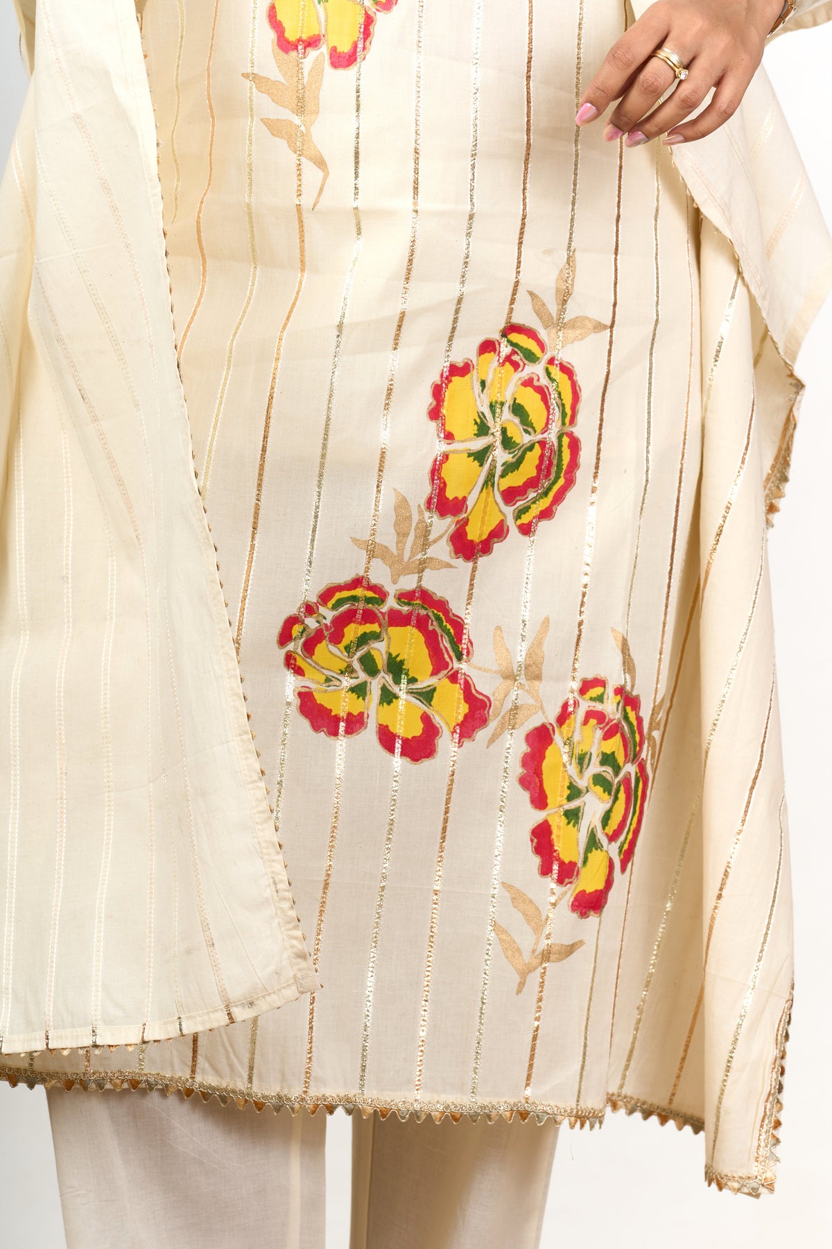 Discover understated elegance with this ivory co-ord dress set, crafted for women who value both style and comfort. Made from soft cotton, the tunic top features intricate floral embroidery and vertical striped detailing, offering a refined look. The relaxed-fit straight trousers ensure ease of movement, making this outfit ideal for festive occasions, intimate gatherings, or day events. Its flowy silhouette and minimalistic tones blend classic sophistication with contemporary charm. Pair this co-ord set with statement accessories and heels to create an elegant yet effortless ensemble.
