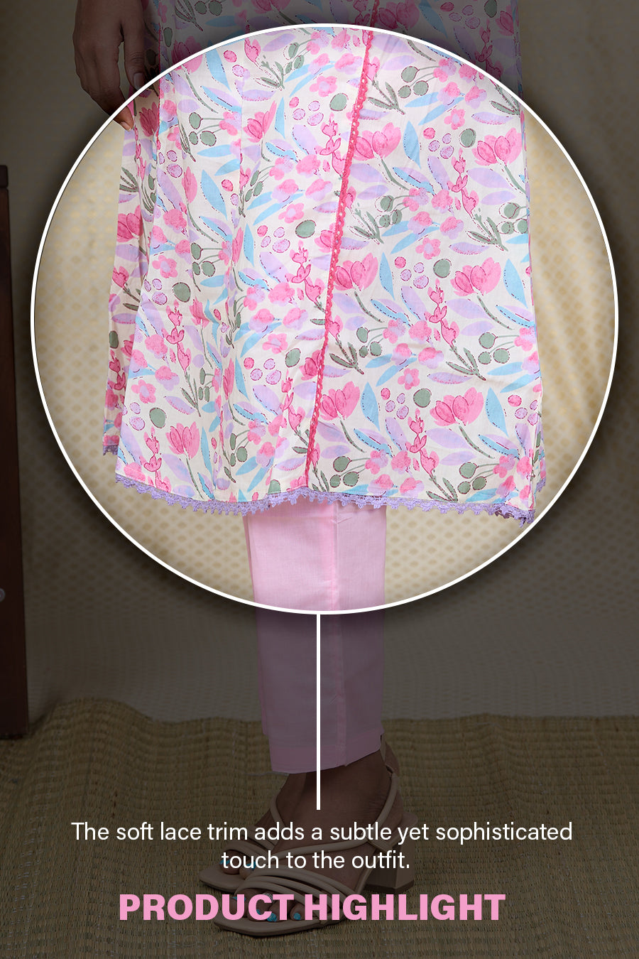 Embrace elegance with this beautiful two-piece suit for ladies, featuring a delicate block print-inspired design. Crafted from 100% pure soft cotton, this salwar kameez set ensures comfort and style for any occasion. The kurta is adorned with intricate thread embroidery and small French knots on the neckline, adding a touch of sophistication. Paired with straight-cut pants and a matching dupatta, this set is perfect for both casual and formal wear. The breathable fabric and thoughtful details make it a must-have addition to your wardrobe.