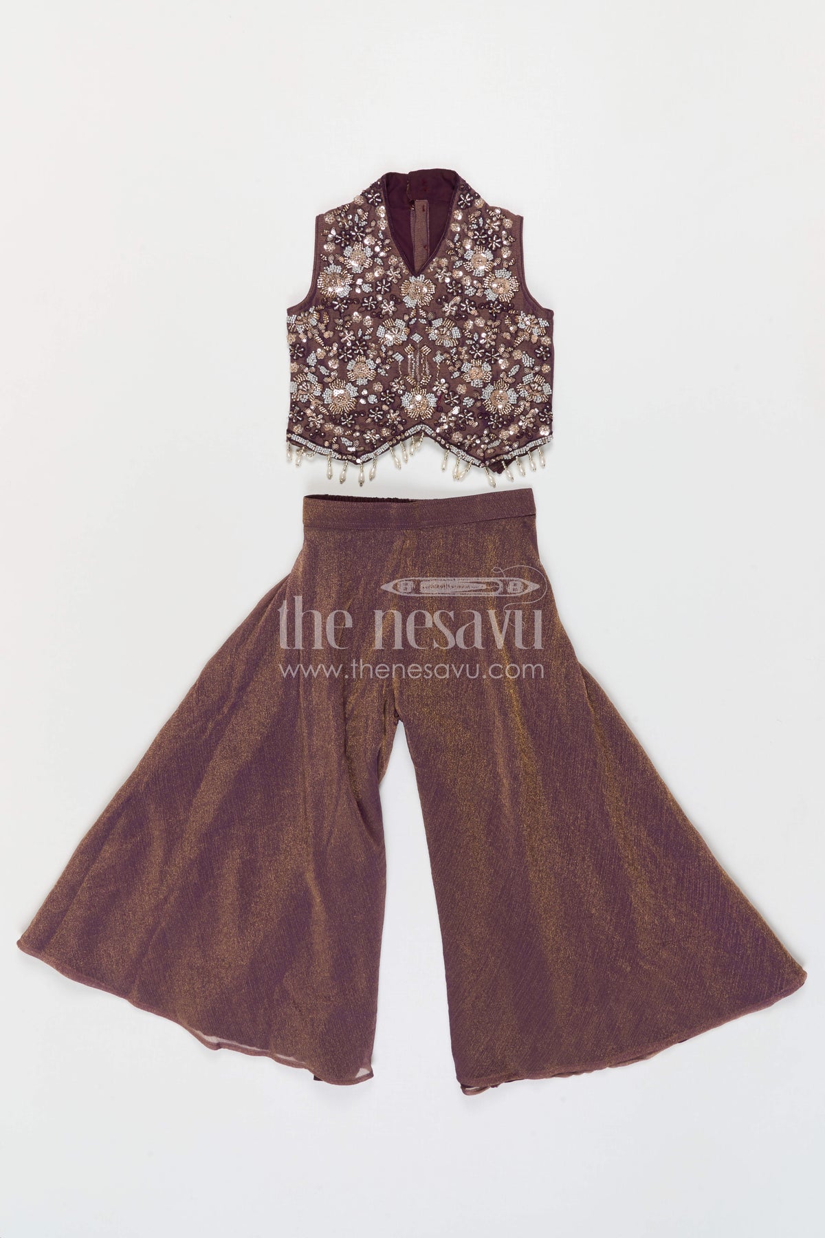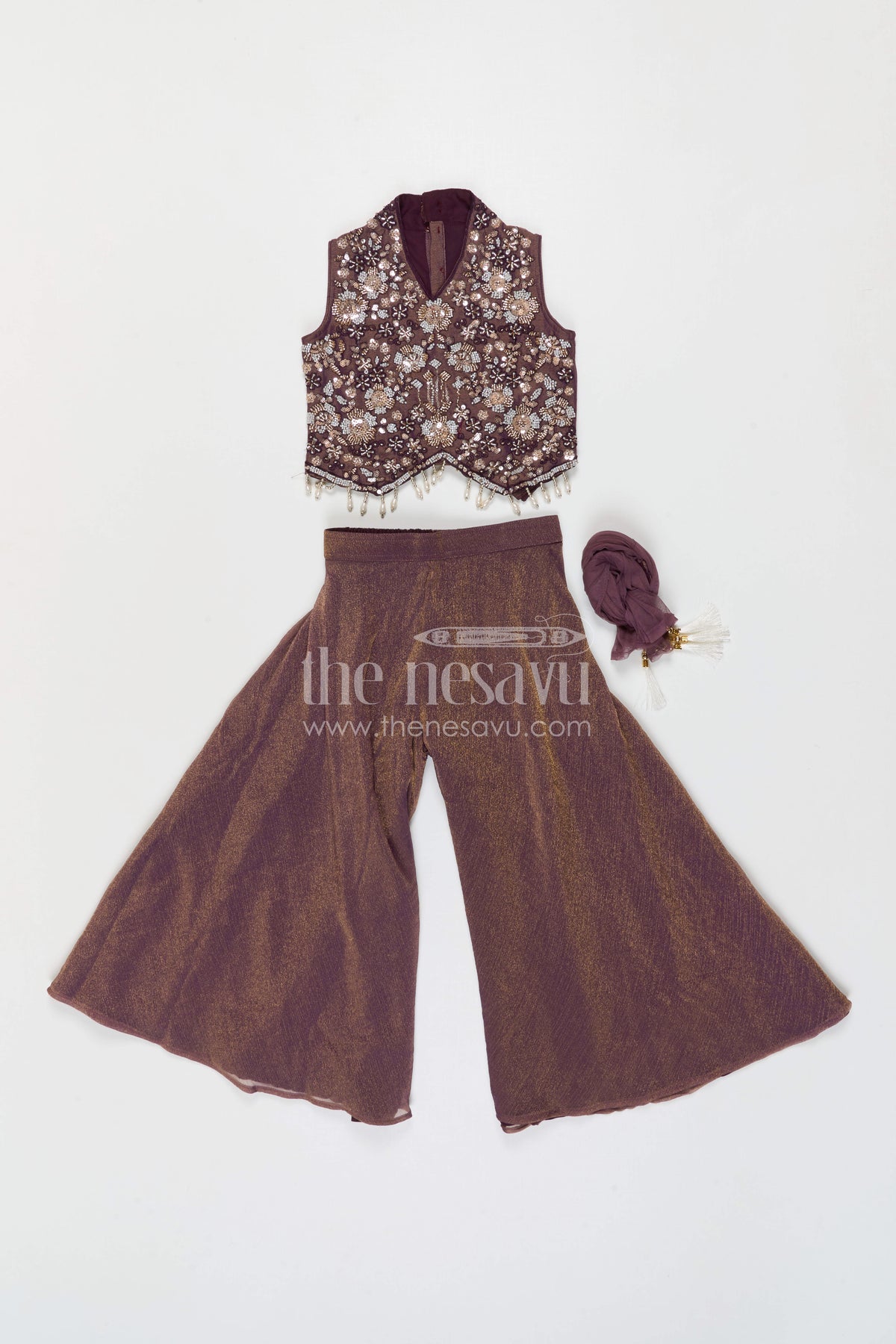 • This girls sharara set for wedding functions is crafted from soft georgette with a detailed designer embroidery yoke