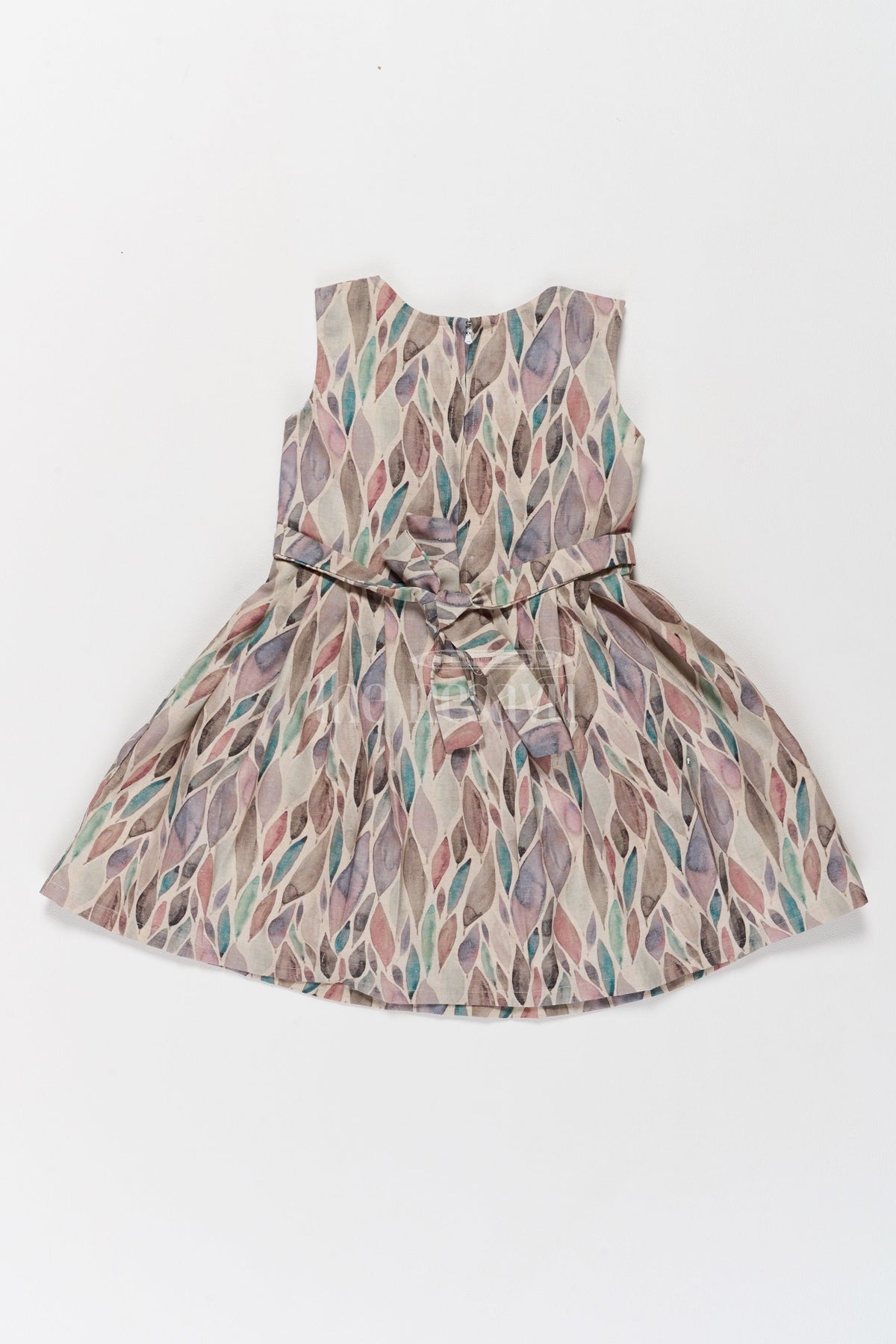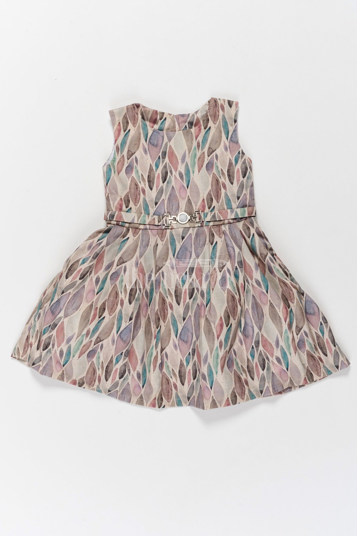 Let your child shine with this trendy cotton frock, featuring a sophisticated artistic leaf print. Crafted from premium cotton, this dress is lightweight, breathable, and perfect for all-day wear. The chic waist belt adds a refined touch, enhancing its modern look while ensuring a comfortable fit. Ideal for casual outings, school events, or family gatherings, this frock is a versatile and stylish choice. Its sleeveless design and soft fabric make it suitable for warm-weather days, keeping your child cool and stylish.