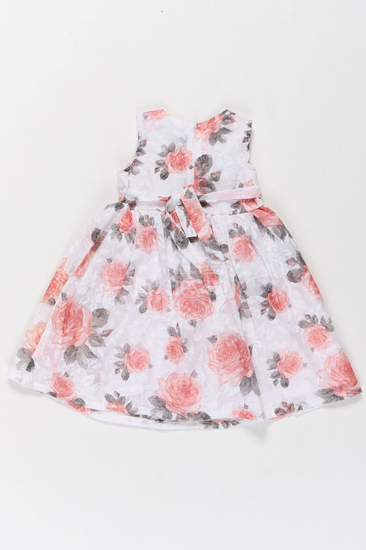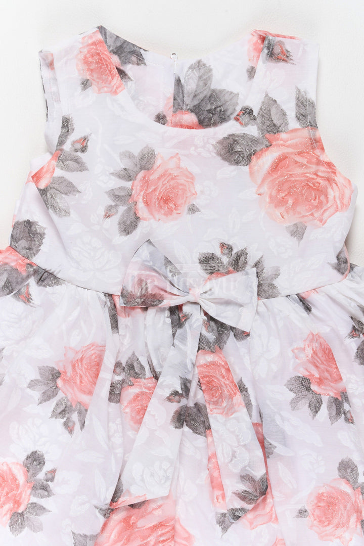 Girls Cotton Frock with Red Floral Print and Bow Tie Waist