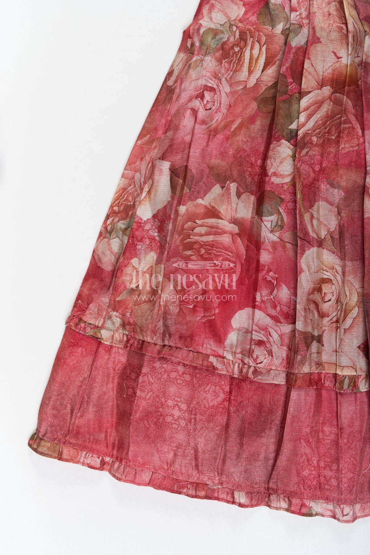 The orange frock dress is a striking and elegant piece that brings together the grace of floral digital prints with the glamour of sequin embroidery. Crafted in delicate tissue fabric, the dress features a beautifully pleated skirt with a vibrant orange base and large rose motifs. The bodice is richly embellished with shimmering sequins in floral patterns, adding a touch of sparkle that catches the light with every twirl. Designed with layered flutter sleeves and a drawstring tie-up at the neckline, this frock offers both style and adjustability. Ideal for festive gatherings or stylish outings, this frock lets your little girl stand out in confident flair while staying light and comfortable all day.