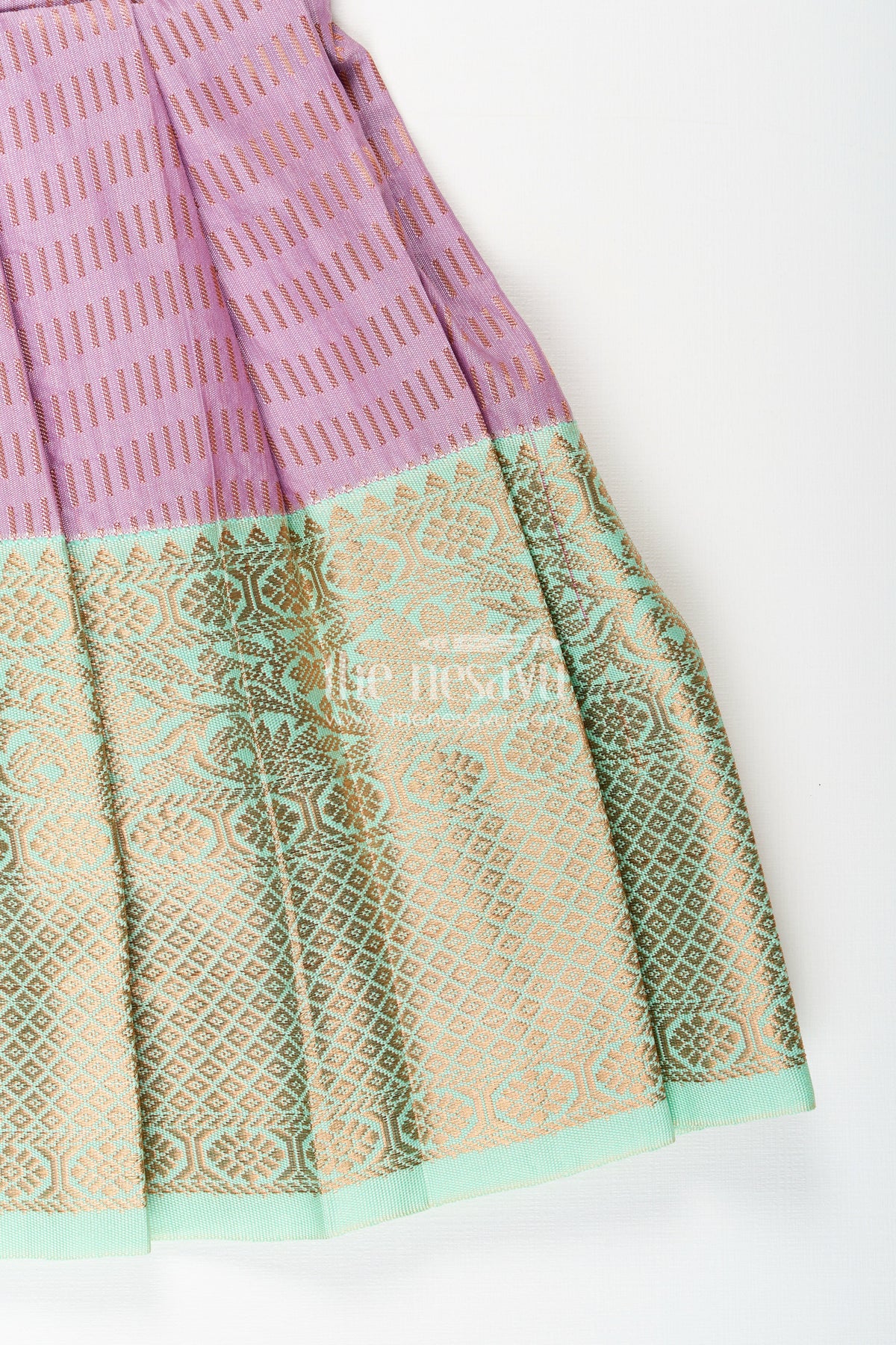 The Nesavu Girls Kanchi Silk Frock Baby girl kanchipuram silk frock for festive and cultural events Nesavu Nesavu baby girl kanchipuram silk frock in purple and green for weddings and festive wear
