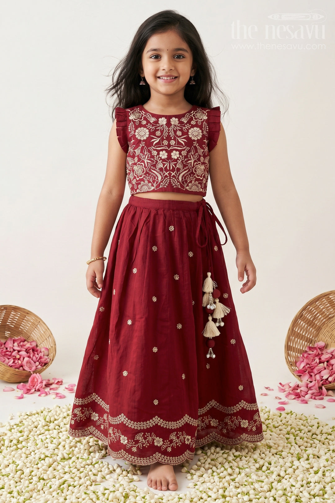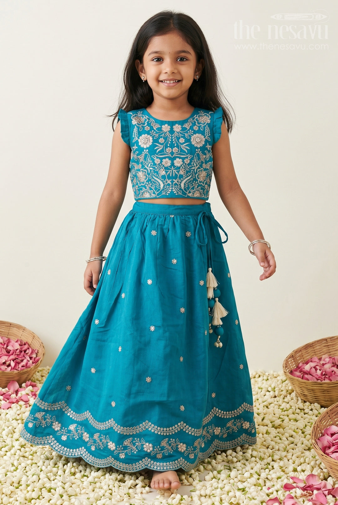 Nesavu Girls Ethnic Lehenga collection is all about festive sparkle and graceful tradition. Designed with beautiful fabrics, vibrant colors, and comfy fits, these lehengas are perfect for weddings, festivals, and special celebrations. Easy to wear and lovely to twirl in, each outfit brings out joyful elegance, making every moment feel truly special.