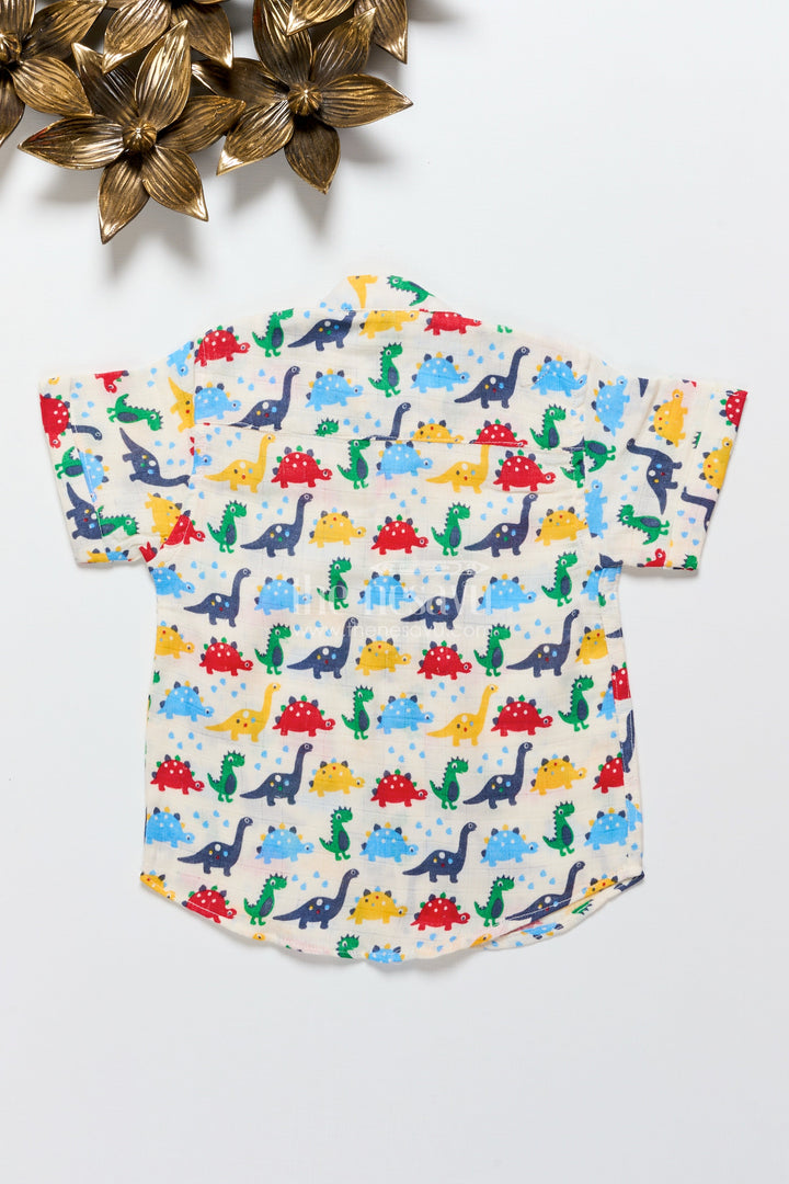 Boys Dinosaur Print Cotton Shirt for Playful Dressing and Casual Outings
