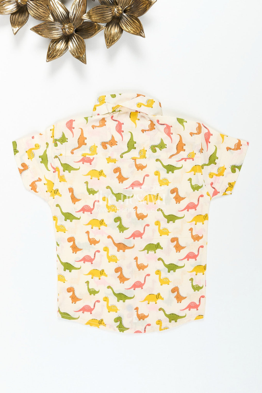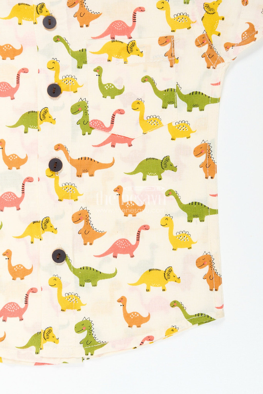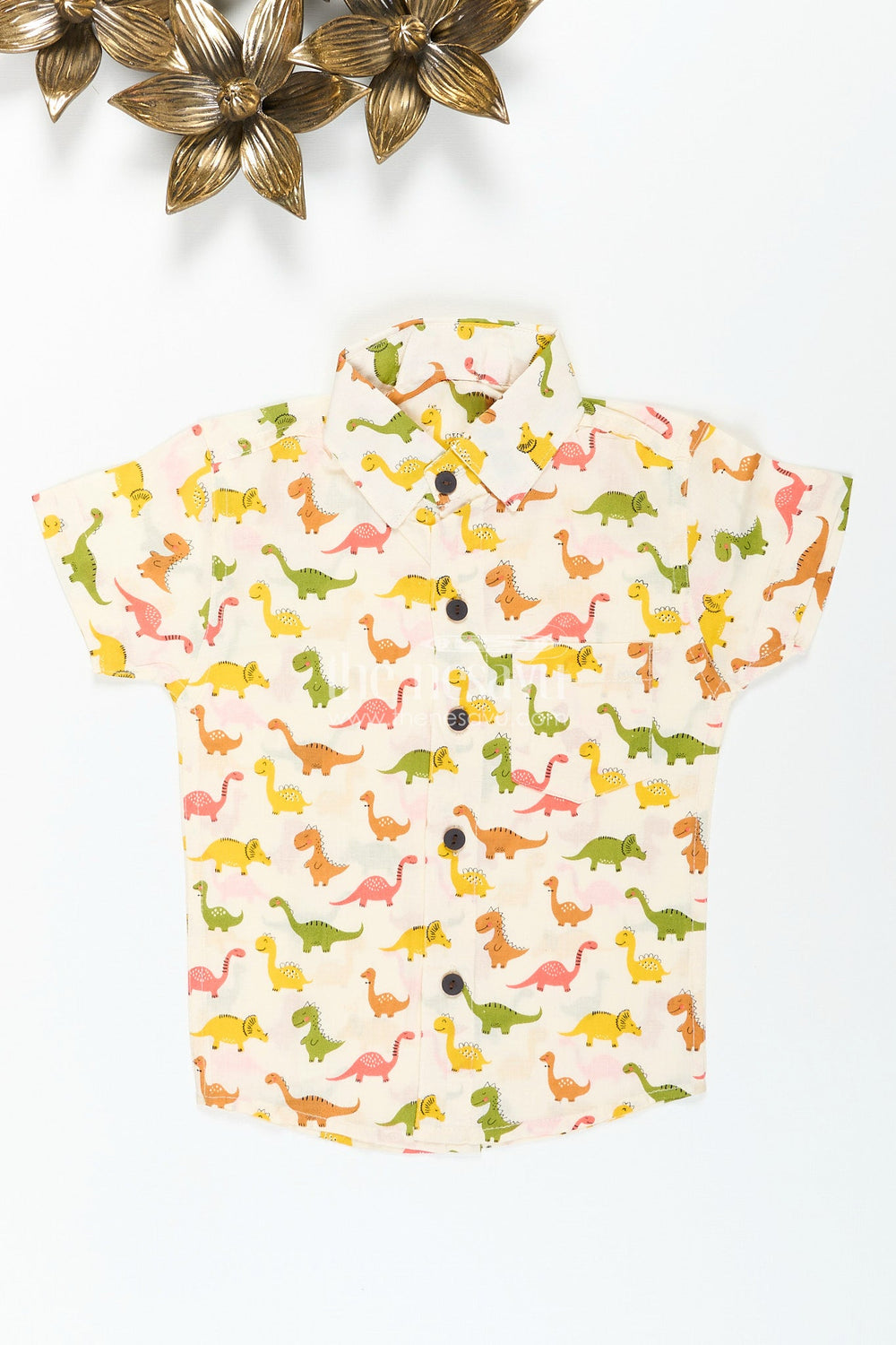 Boys Dinosaur Print Shirt in Earthy Tones for Birthday Parties