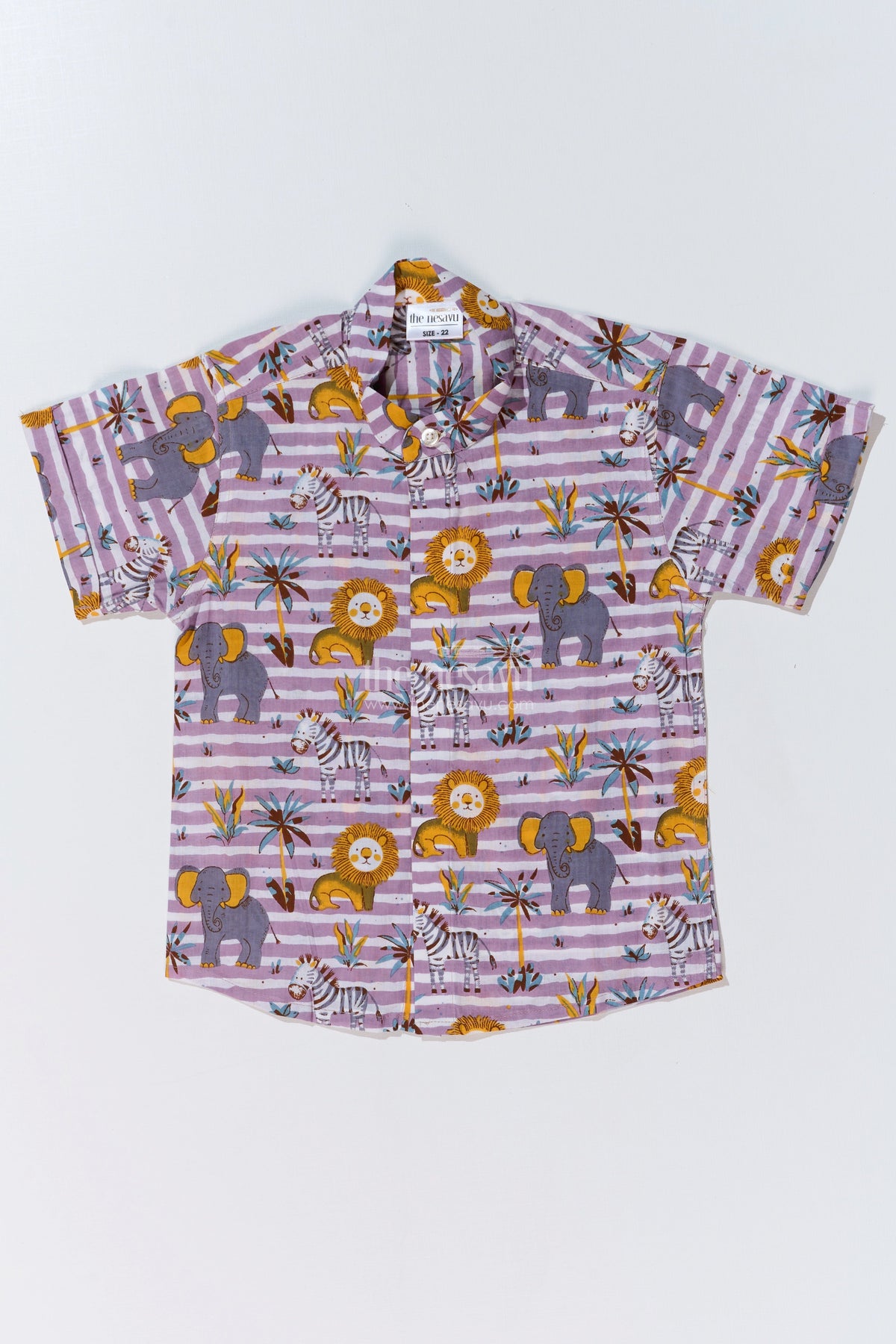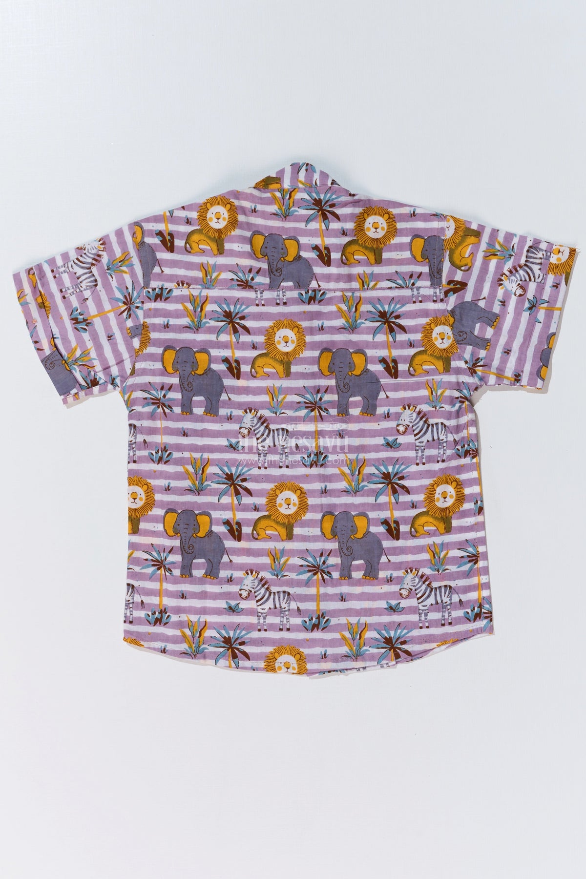 The Nesavu Boys Cotton Shirt Boys Animal Print Casual Dress Shirt in Cotton Block Print with Safari-Inspired Design Nesavu 16 (1Y) / Purple BS241A-16 Nesavu Boys Animal Print Casual Dress Shirt Cotton Block Print Safari Theme