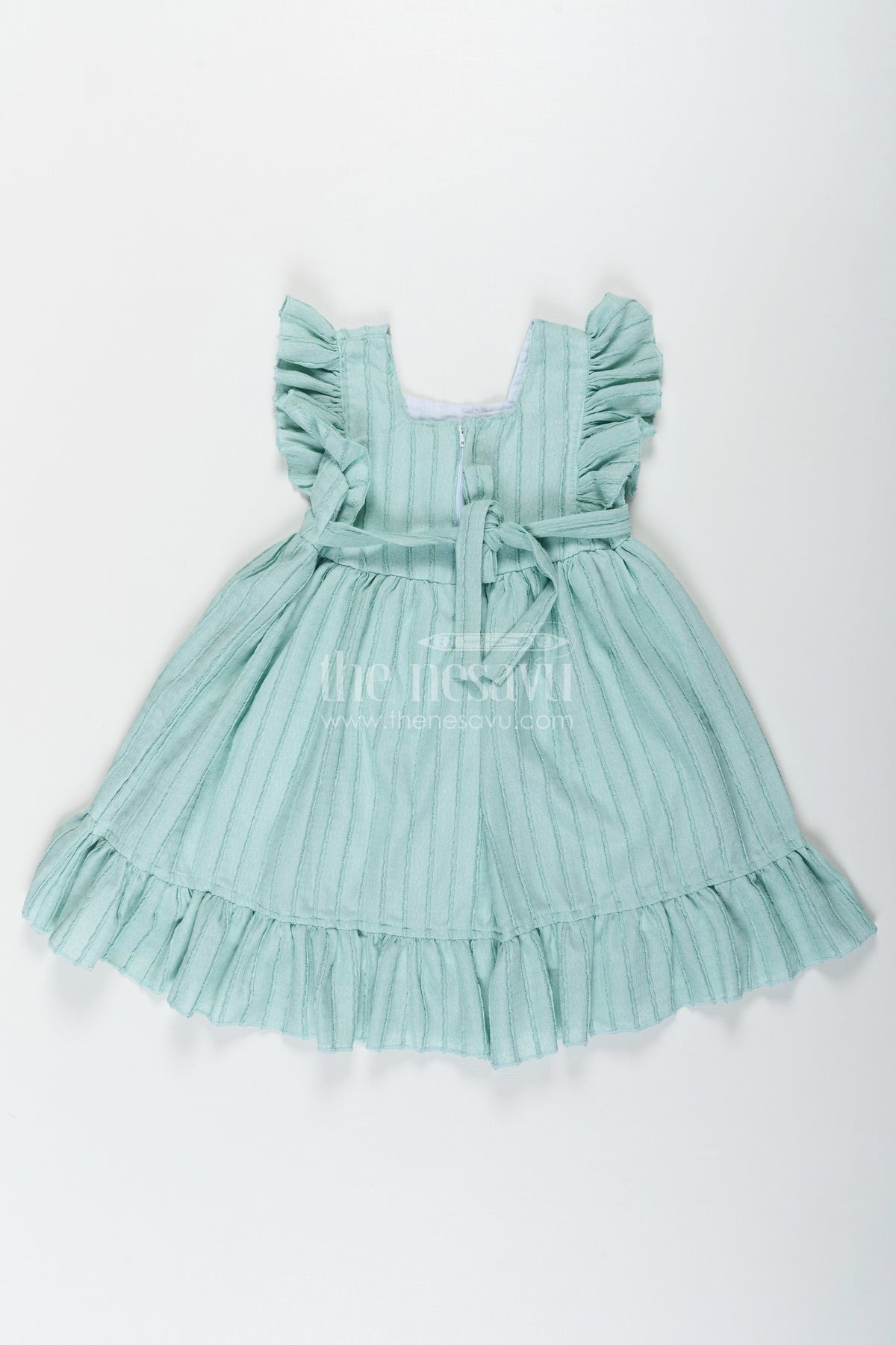 The Nesavu Girls Cotton Frock Girls Easter Frock in Soft Cotton with Ruffled Straps and Floral Appliqué for a Playful Look Nesavu 20 (3Y) / Green GFC1651A-20 Girls Easter Frock Soft Cotton Ruffled Straps Floral Appliqu Casual Wear | The Nesavu