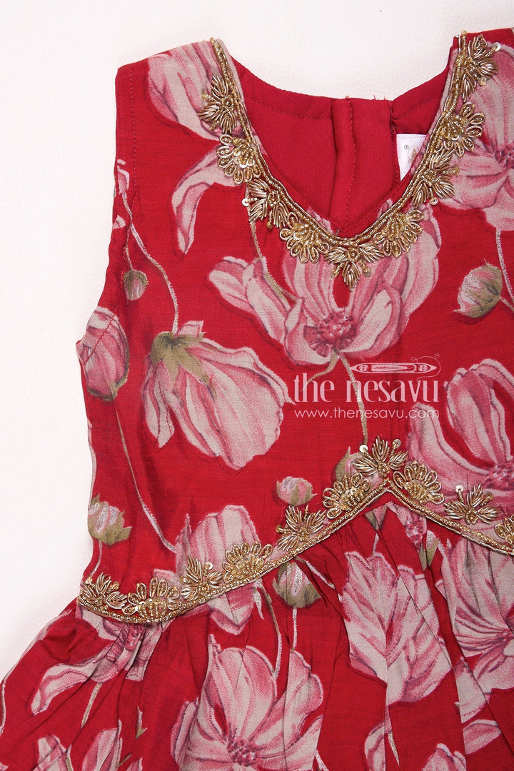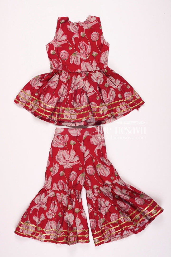 The Nesavu Girls Sharara / Plazo Set Nesavu Modal Silk Printed Sharara Kurti Dress for Girls Dussehra Special Hand Embroidered Outfit Nesavu 16 (1Y) / Maroon GPS308B-16 Nesavu Modal Silk Sharara Kurti Dress for Girls | Dussehra Special