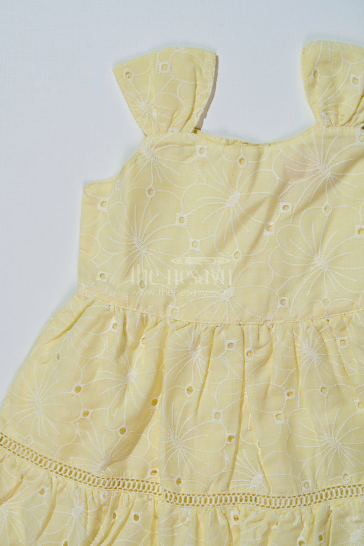 This pastel casual outfit is a must-have for every little fashionista who loves soft and breathable outfits. Made from high-quality pastel cotton, this dress features stunning Chikankari embroidery that enhances its elegant appeal. The gathered ruffles and tiered hem create a fun and flowy look, making it an ideal choice for summer days, outings, and festive occasions. The fresh yellow tone brings a bright and cheerful touch to this stylish frock. Pair it with cute sandals and a hair clip for an effortlessly adorable look!