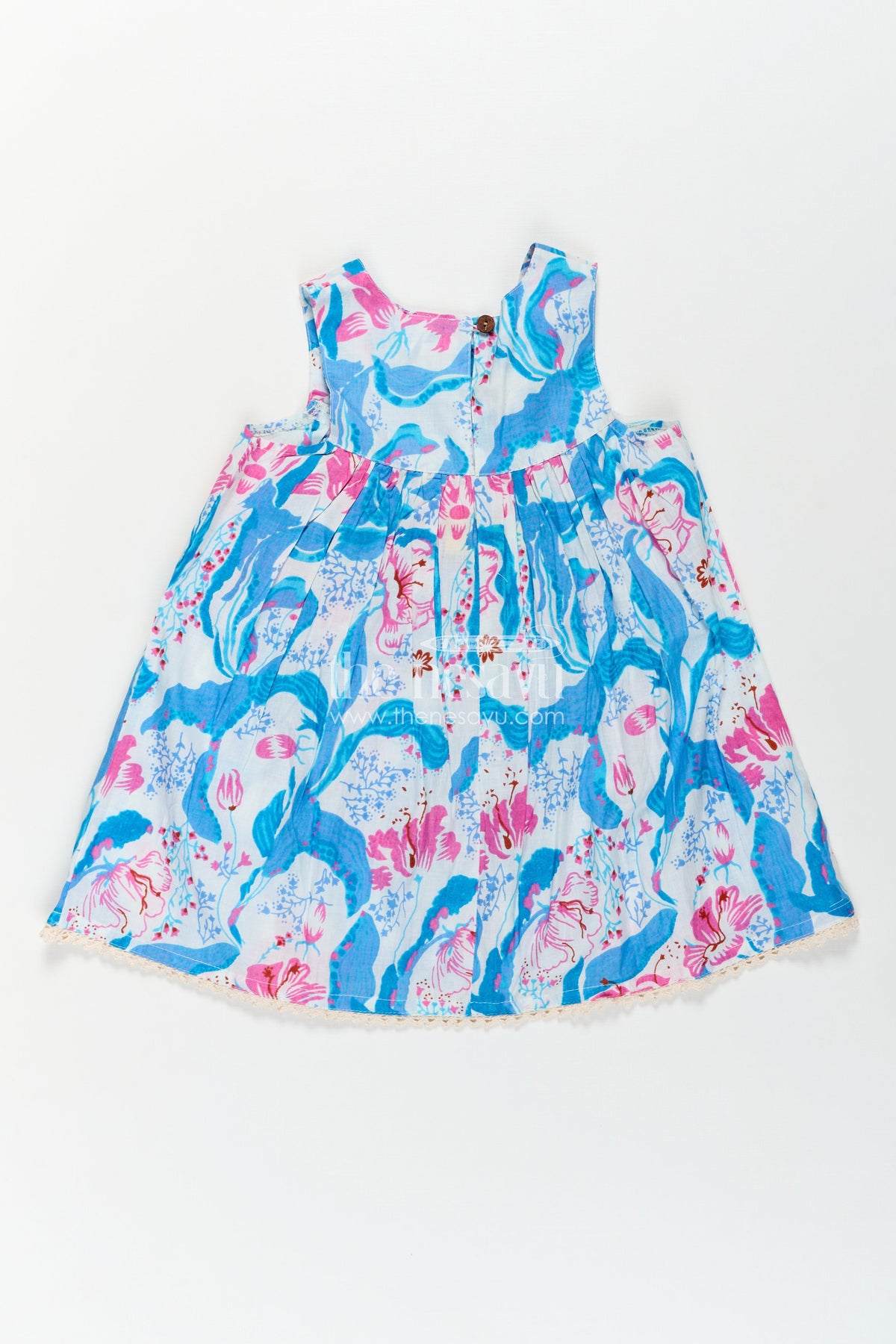 The Nesavu Girls Cotton Frock Girls Cotton Simple Design Of Frock with Blue and Pink Floral Digital Print and Classic Sleeveless Fit Nesavu 16 (1Y) / Blue GFC1751A-16 Girls Cotton Simple Design Frock Blue Pink Floral Digital Print Everyday Elegance | The Nesavu