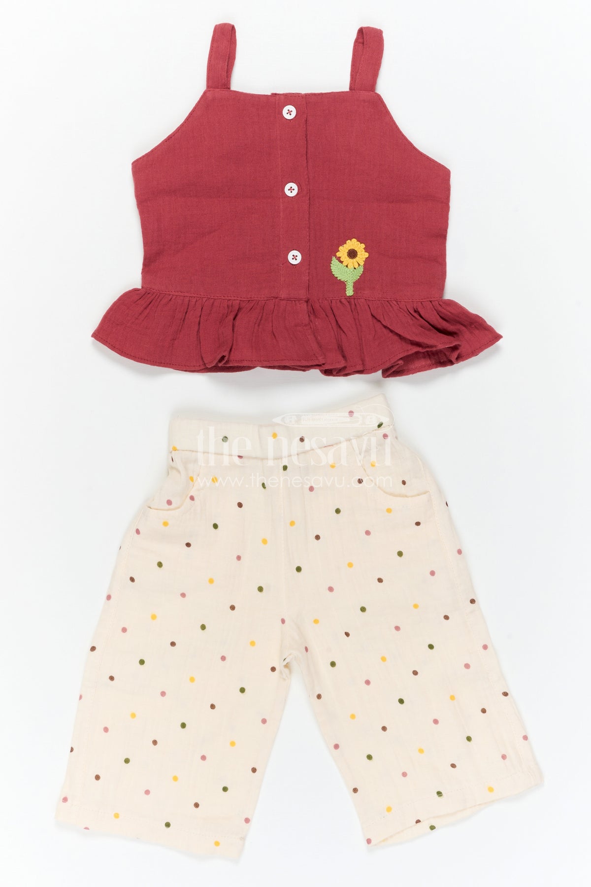 The Nesavu Baby Casual Sets Baby Girl Casual Outfit Set for Daily Wear and Outings Nesavu Nesavu Baby Girl Muslin Cotton Casual Set With Sleeveless Top And Printed Pants For Daily Wear Comfort