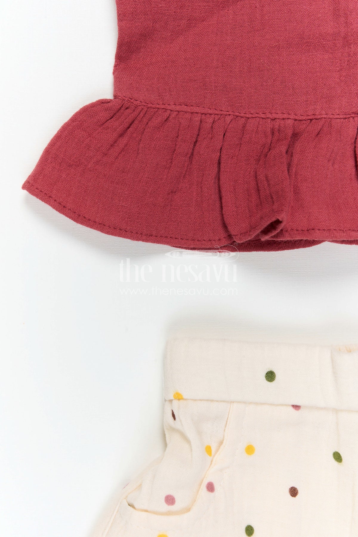The Nesavu Baby Casual Sets Baby Girl Casual Outfit Set for Daily Wear and Outings Nesavu 16 (1Y) / Red / Muslin Cotton GPS1041A-16 Nesavu Baby Girl Muslin Cotton Casual Set With Sleeveless Top And Printed Pants For Daily Wear Comfort