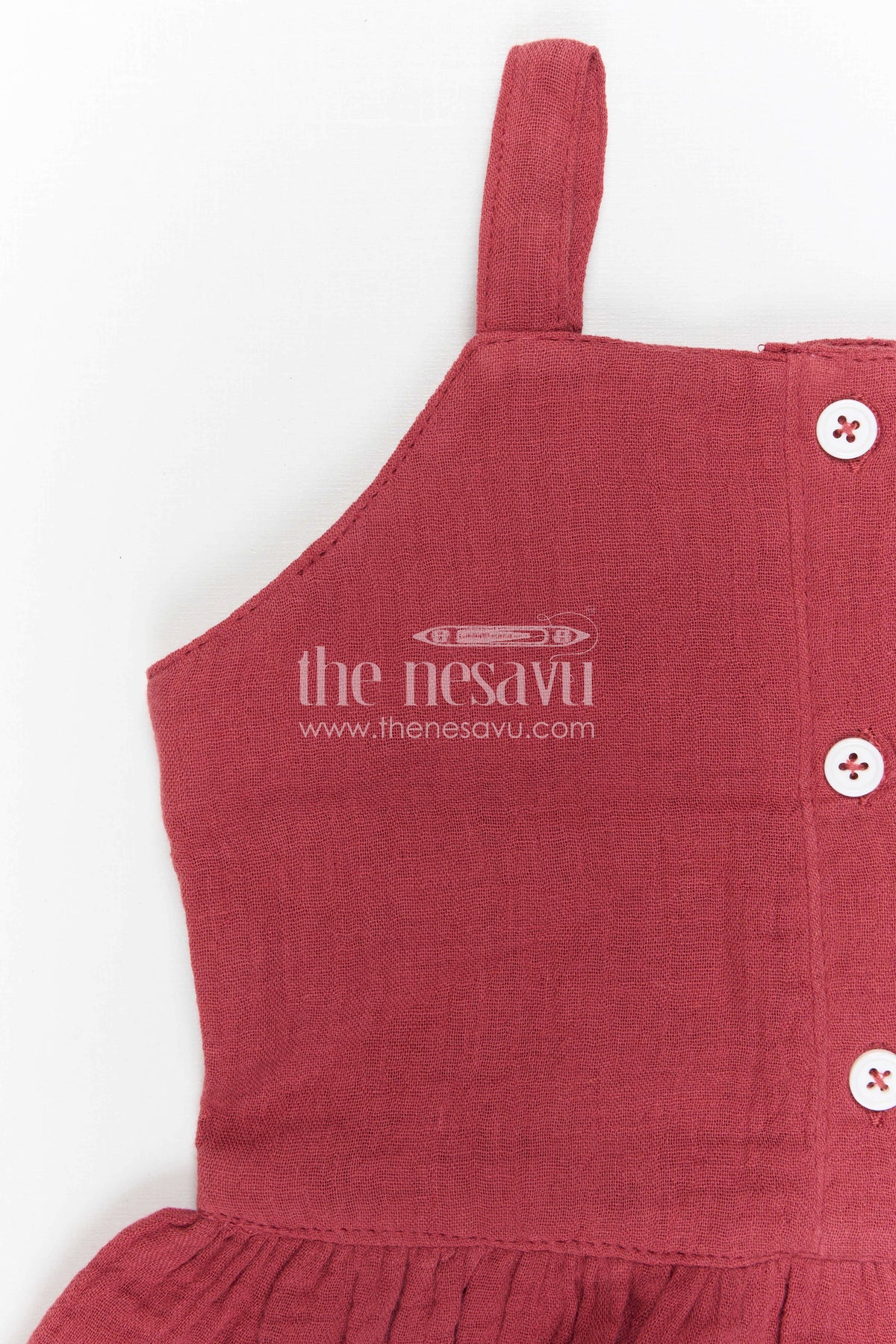 • Features a sleeveless top with a cute floral detail and back button closure