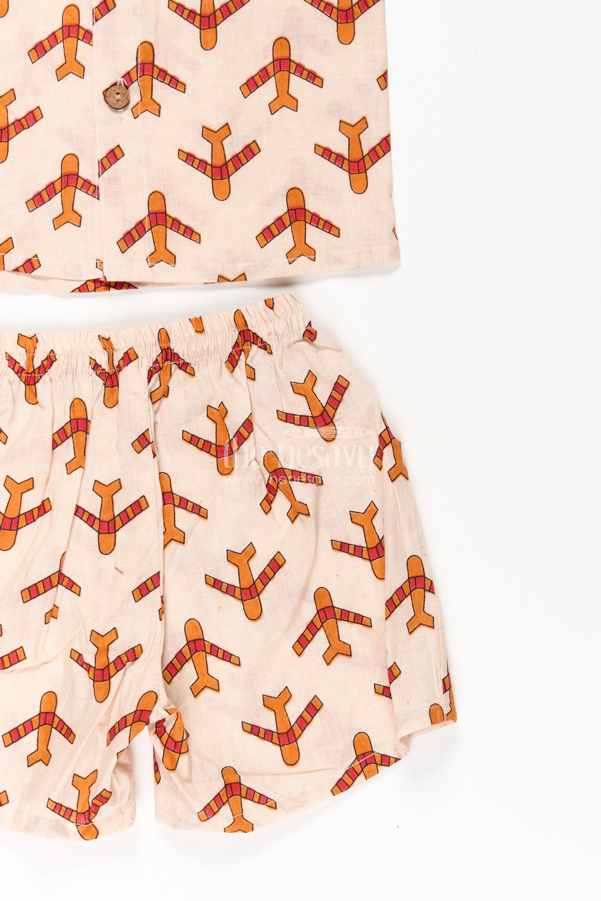 Boys Cotton Casual Dresses Set with Digital Print in Beige and Rust Tones for Everyday Style