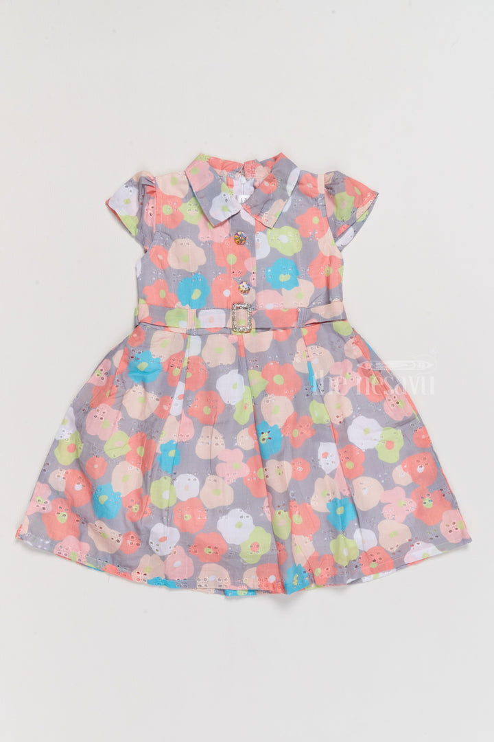 Simple Cotton Frock for Girls with Bright Floral Patterns and Waist Belt