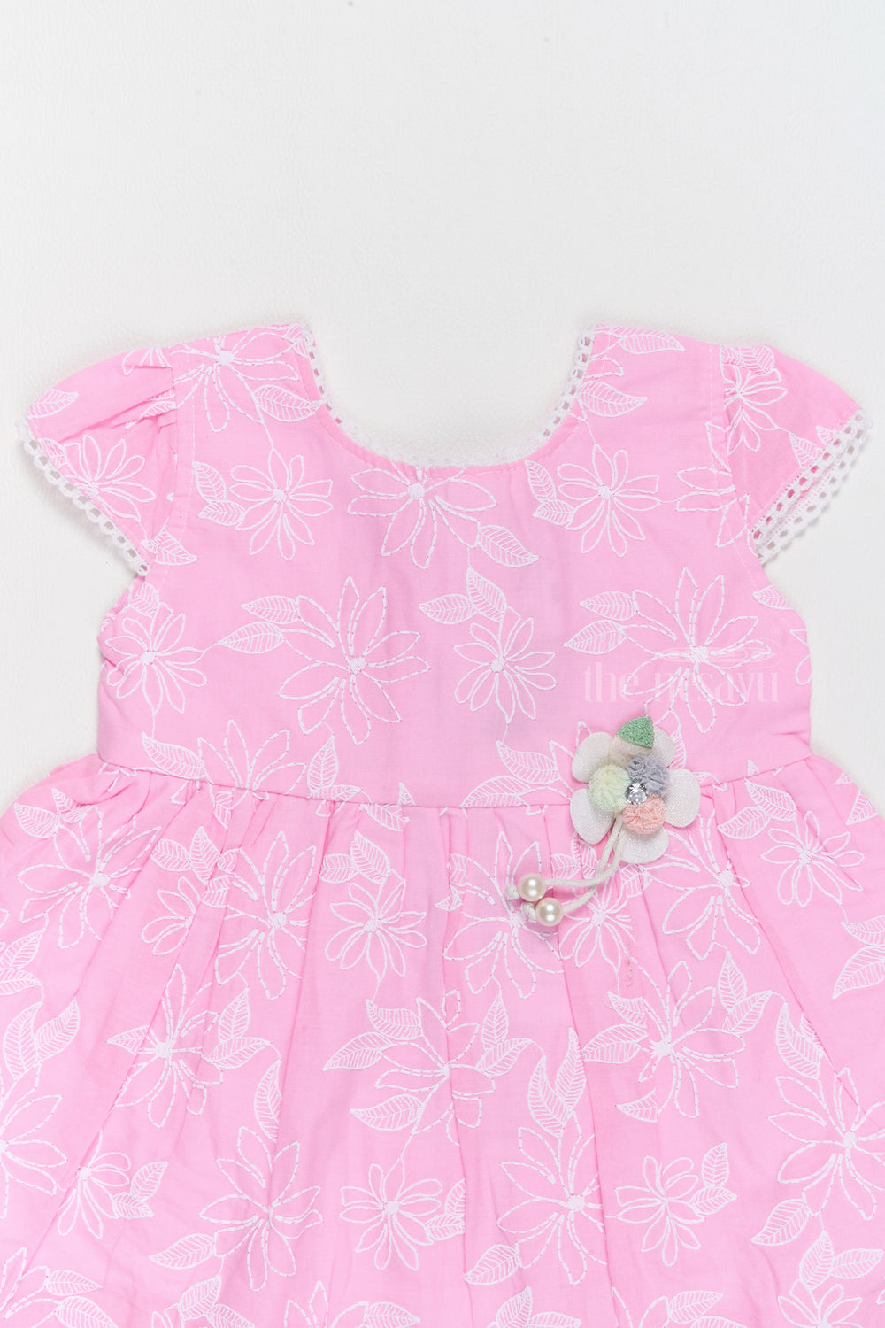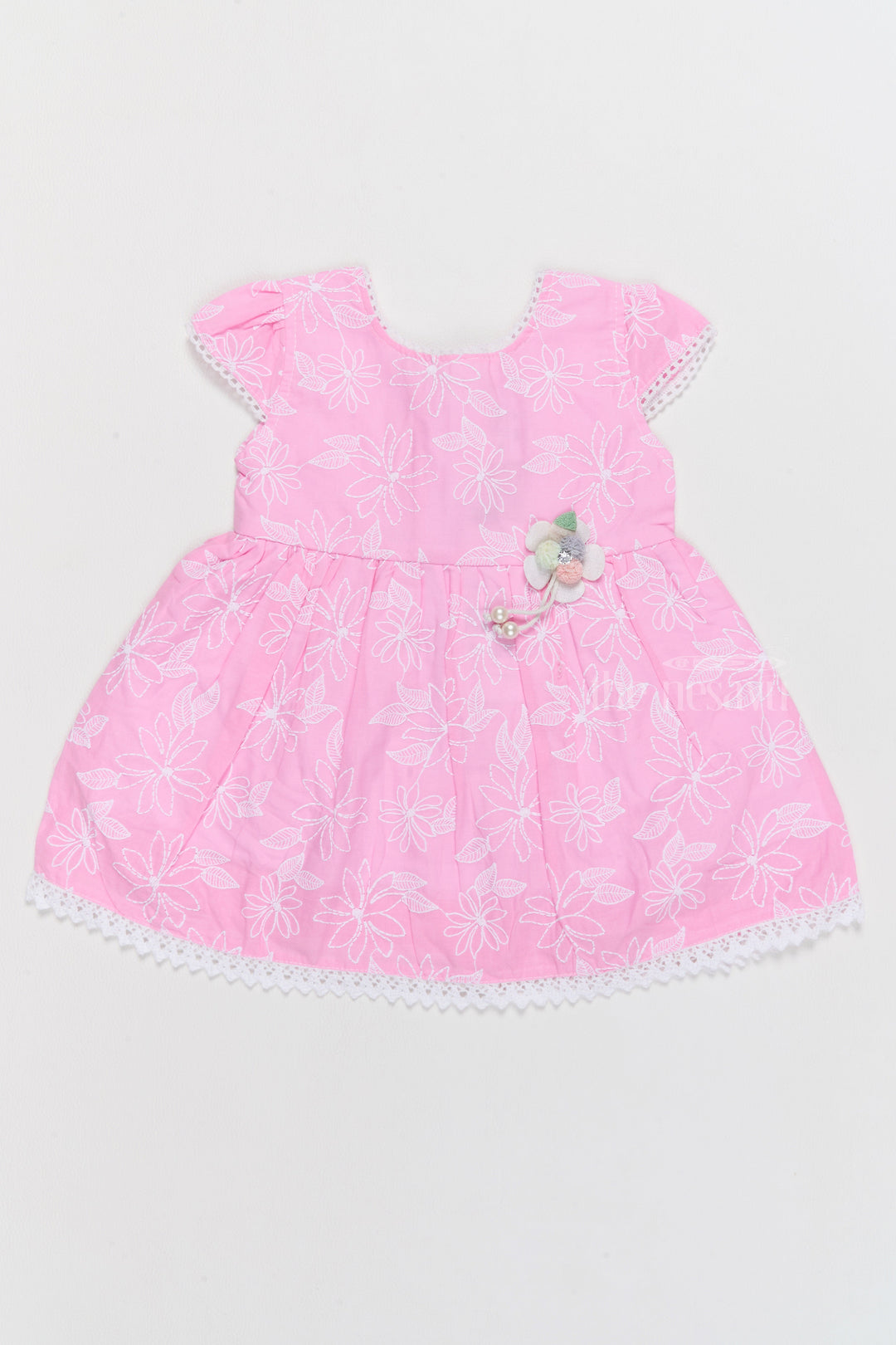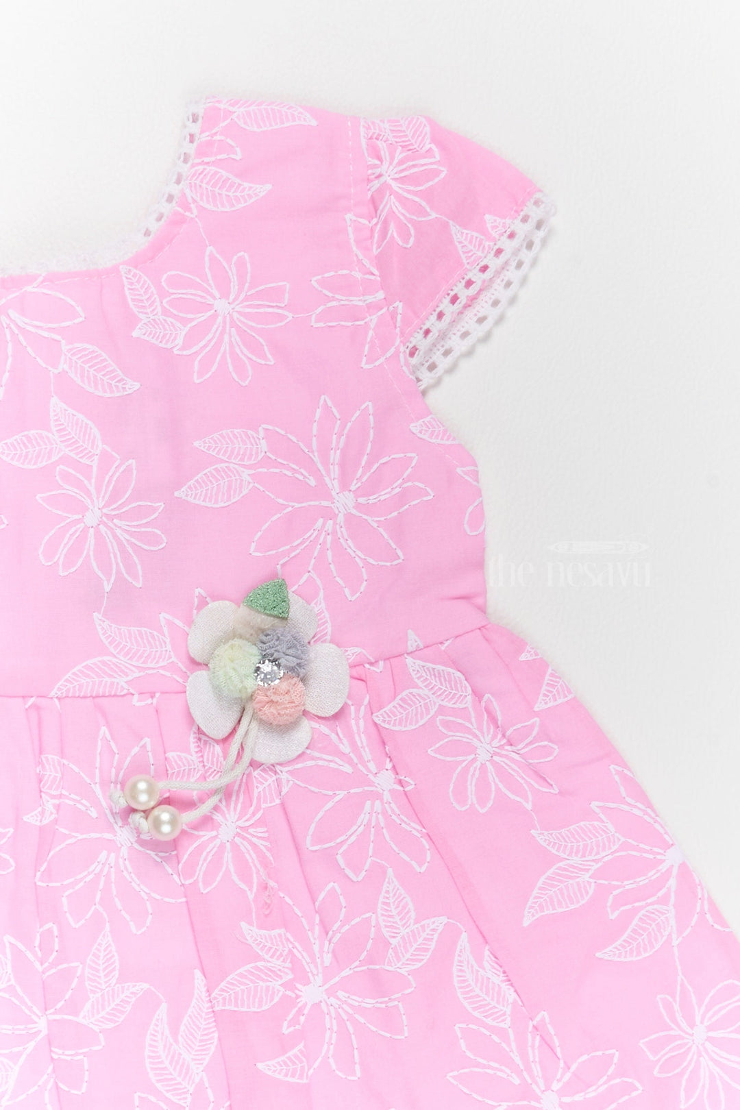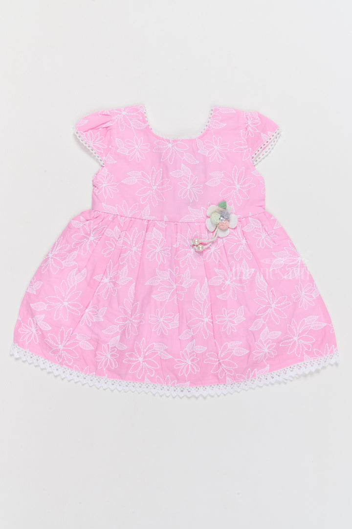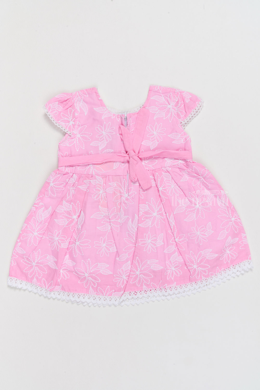The Nesavu Baby Cotton Frocks Cotton Simple Dress for Girls with Floral Embroidery and Lace Hem Nesavu 14 (6M) / Pink BFJ705B-14 Nesavu Cotton Simple Girls Dress Floral Embroidery Lace Hem Special Occasions