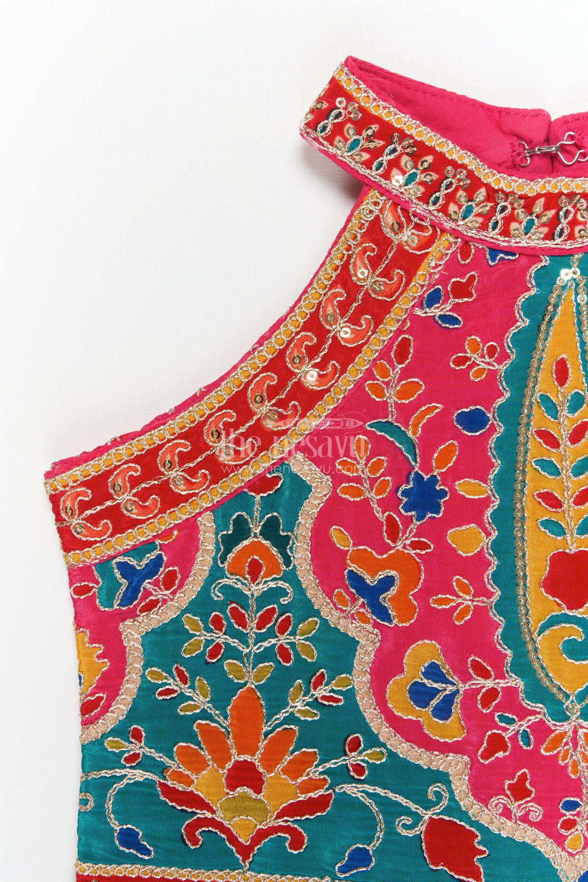 Do not iron on zari; if needed, iron inside out