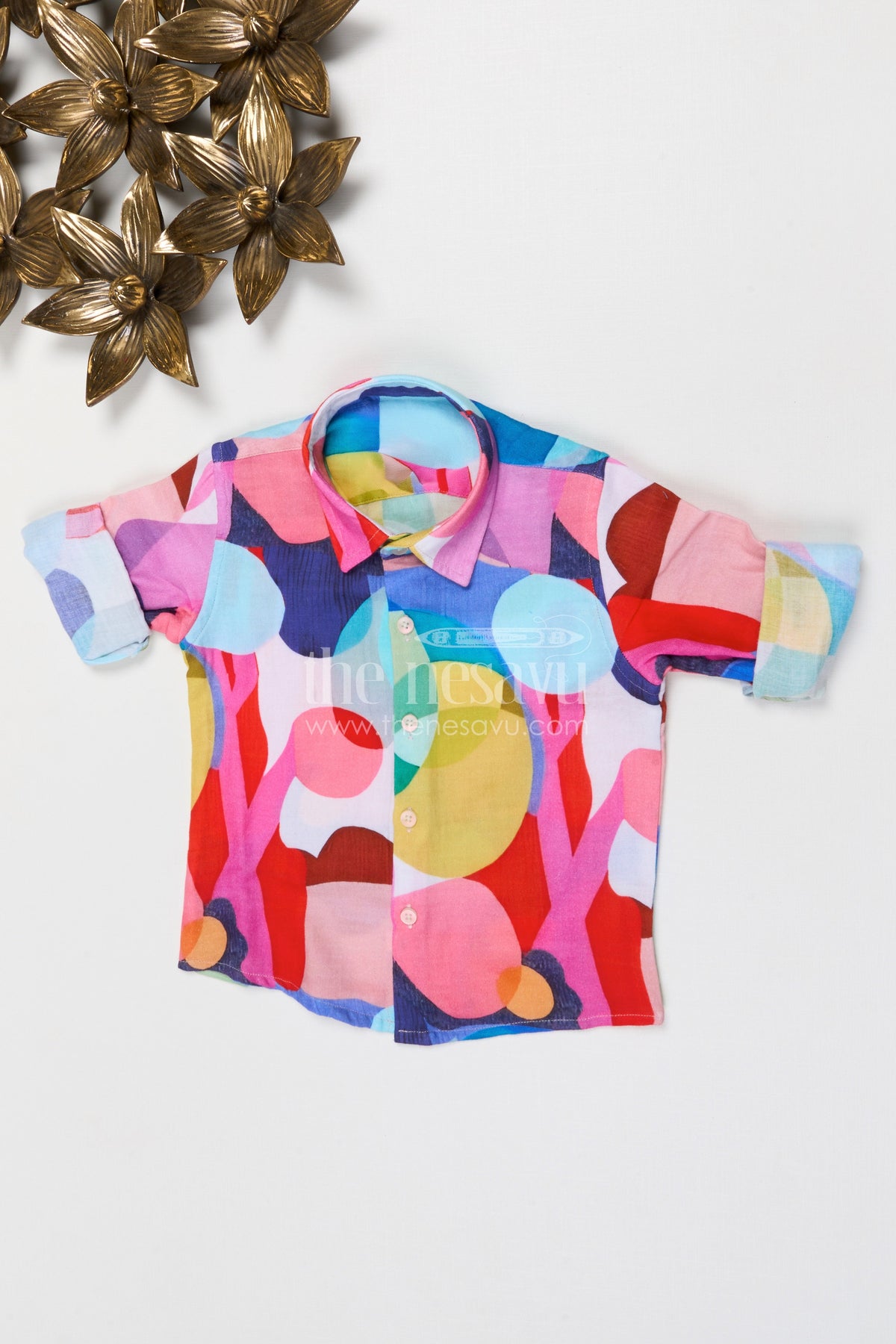 - This boys printed cotton shirt for festive outings and special occasions is designed to bring a vibrant touch to kids wardrobes