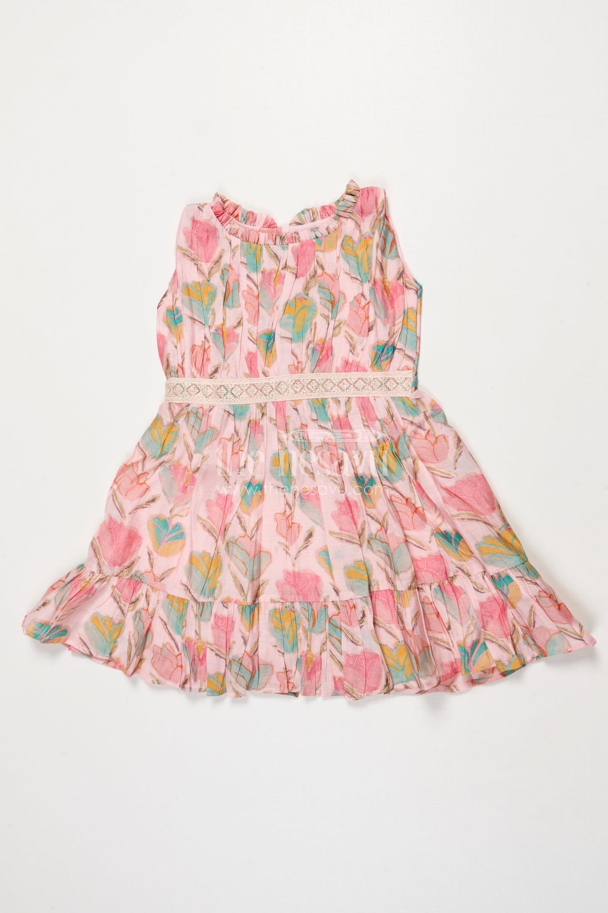 The Nesavu Girls Cotton Frock Baby Girl Printed Frock for Birthday Parties and Casual Celebrations Nesavu 18 (2Y) / Pink GFC2024A-18 Nesavu baby girl floral printed frock in modal silk for birthday parties and special outings