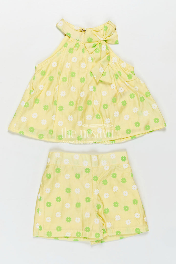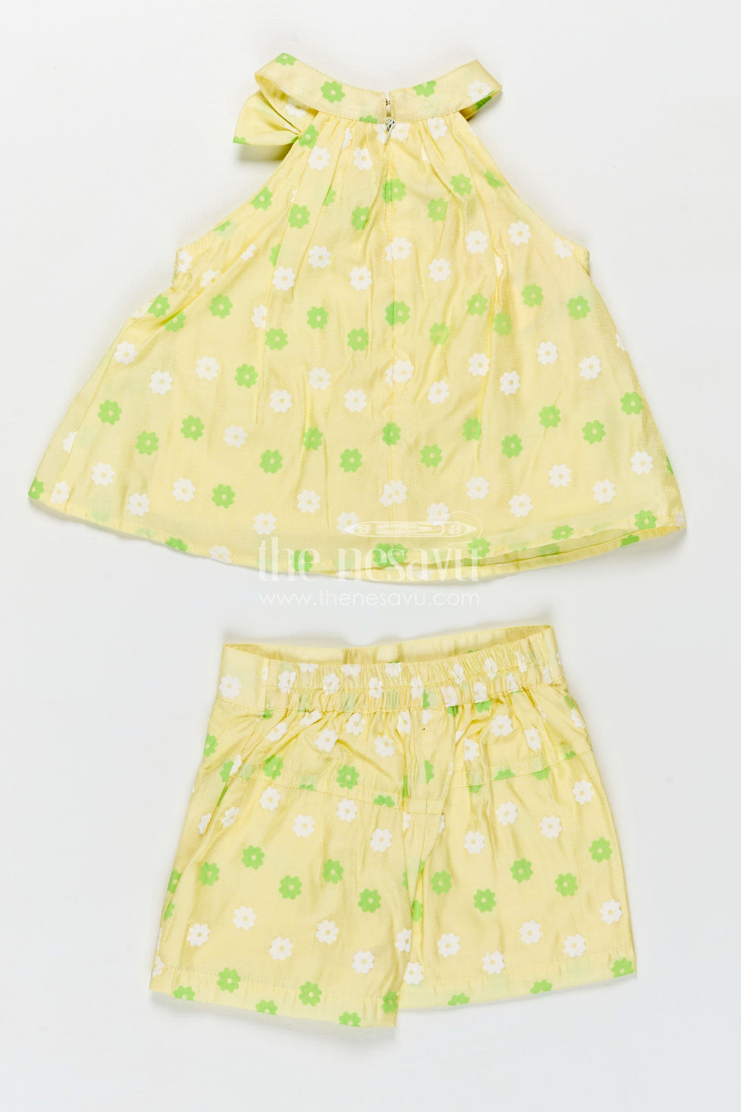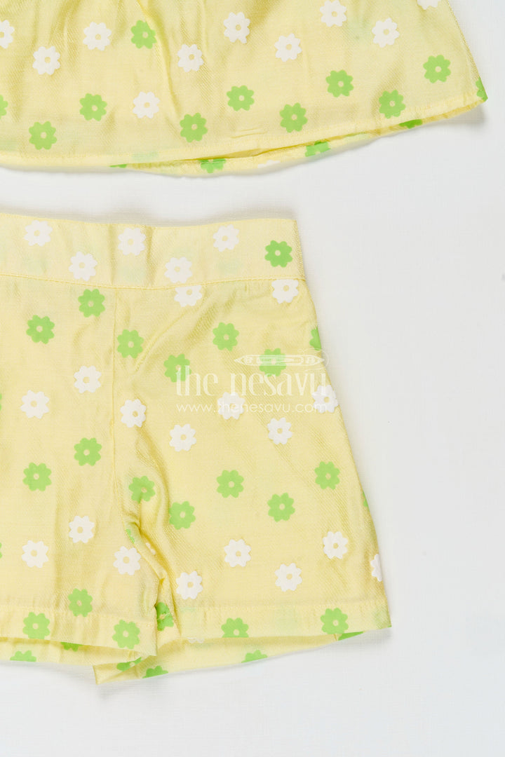 - Design: Floral printed top and shorts set