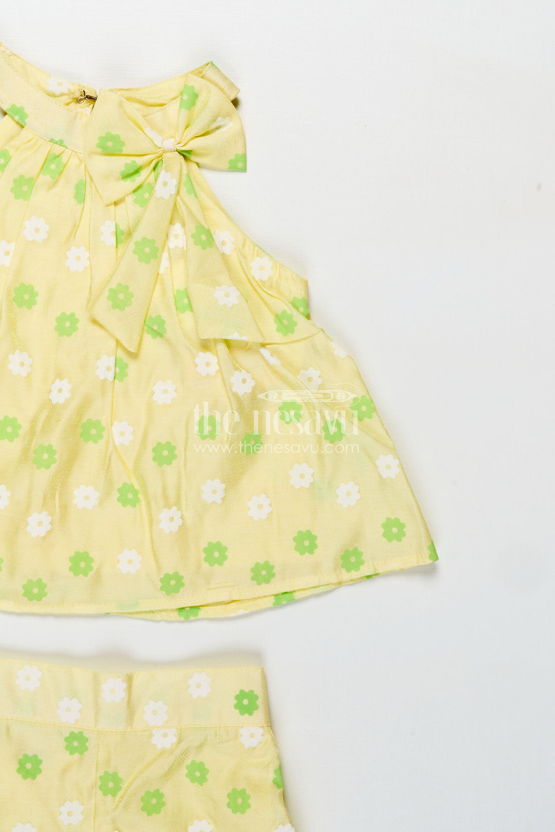 The baby clothes set is a soft and playful outfit made especially for toddlers who love to move and explore. Designed with care, this baby casual set is made from breathable cotton poplin fabric and features a sleeveless tie-shoulder top and coordinating shorts. The gentle green base is uplifted with a sweet floral print that brings charm without overwhelming the design. The adjustable tie-shoulders offer flexibility as your baby grows, while the lightweight material ensures day-long comfort during active play. Perfect for sunny days, playdates, or casual homewear, this set is a must-have for parents seeking stylish, easy-to-maintain babywear that keeps their little one looking and feeling good.