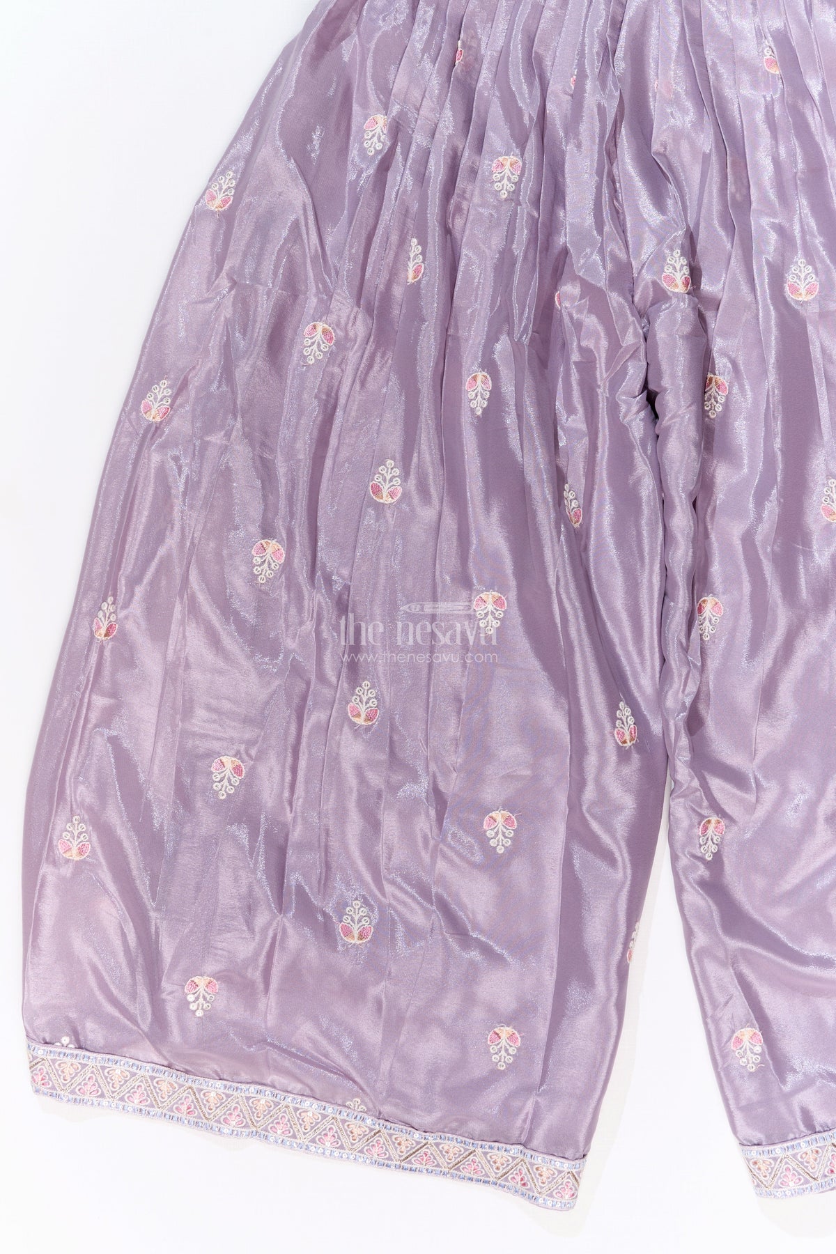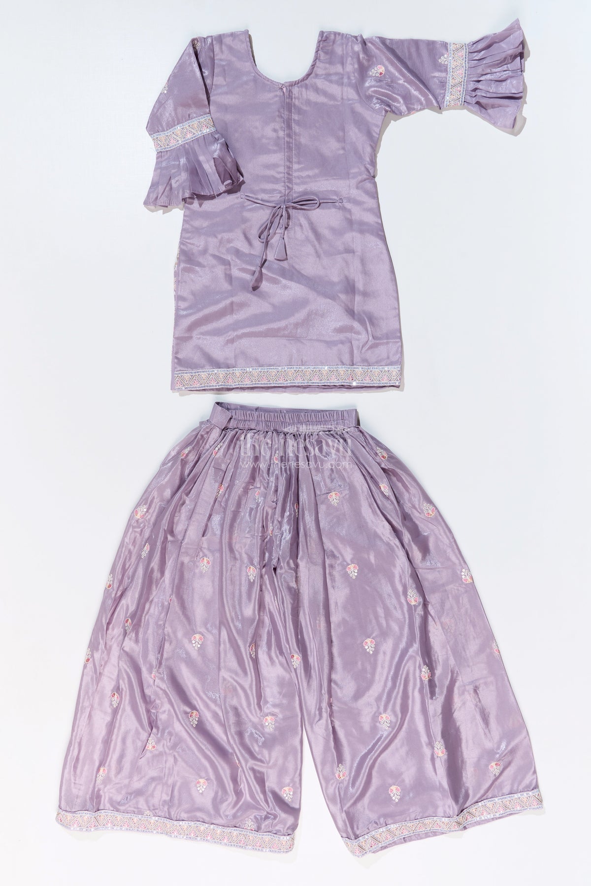 The Nesavu Girls Sharara / Plazo Set Girls Grey Sharara Set with Embroidered Kurta and Bell Sleeve Detailing Nesavu 24 (5Y) / Purple GPS520A-24 Nesavu Girls Embroidered Grey Sharara Set Floral Threadwork Elegant Dupatta
