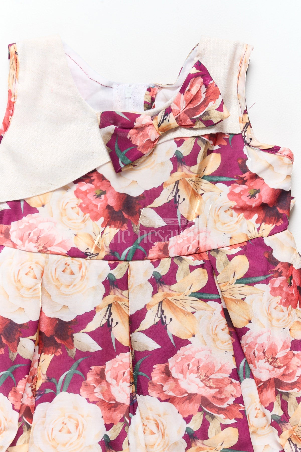 The Nesavu Girls Fancy Frock Princess-Inspired Girls Georgette Frock with Floral Motifs and Decorative Bow Nesavu 20 (3Y) / Multicolor GFC1541A-20 Nesavu Princess Style Girls Georgette Frock Floral Motifs Chic Bow