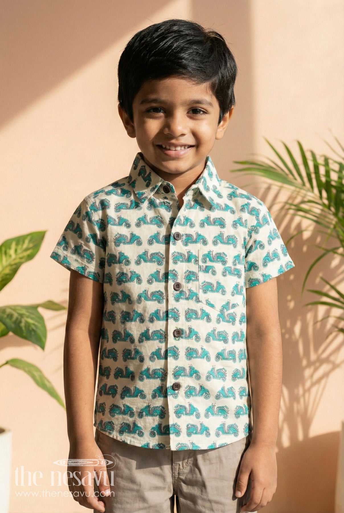 Boys Cotton Scooter Print Shirt for Fun Casual Wear