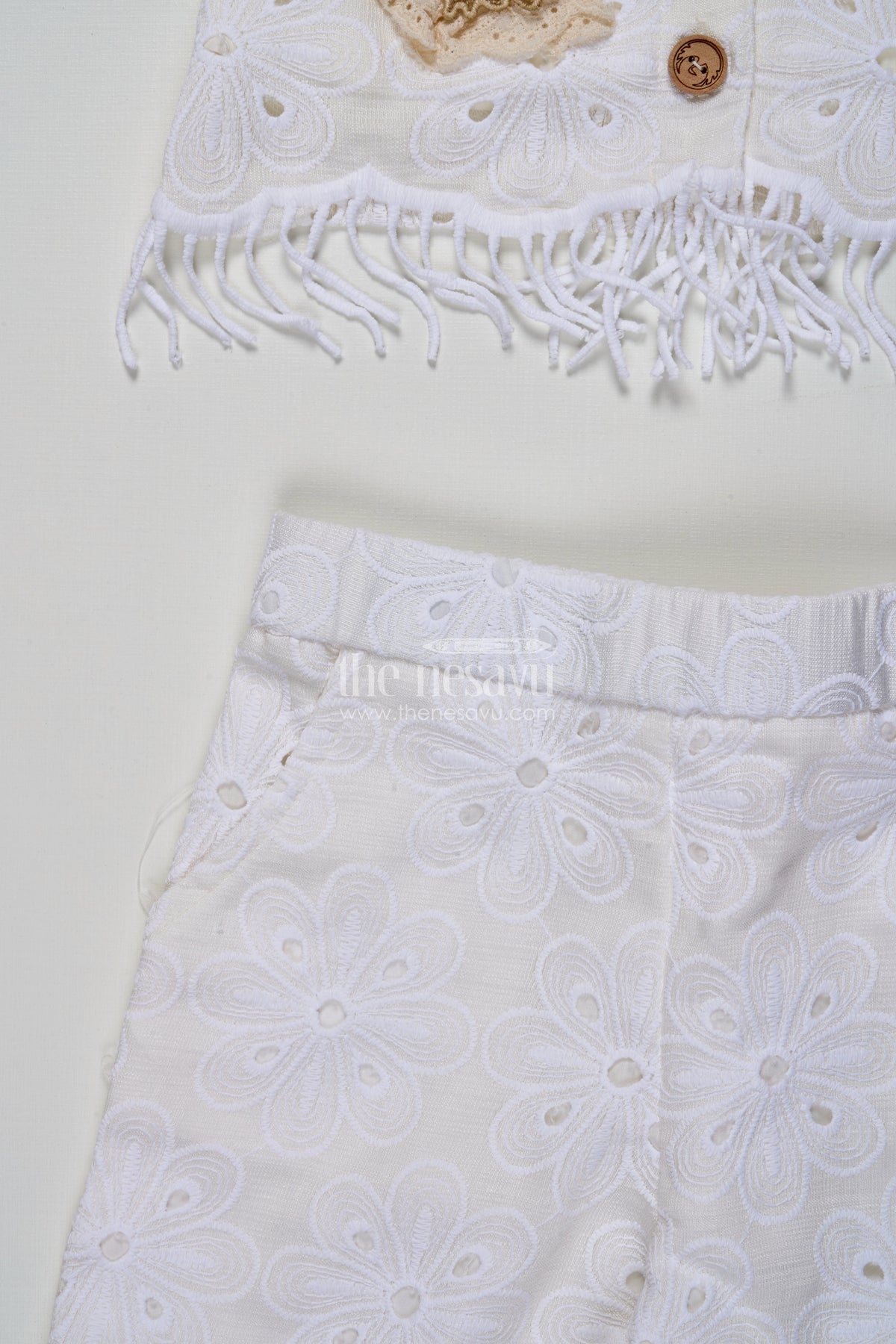 • Design: Floral embroidery, 3D doll patch, fringe detailing