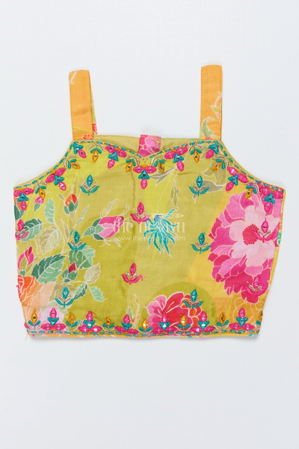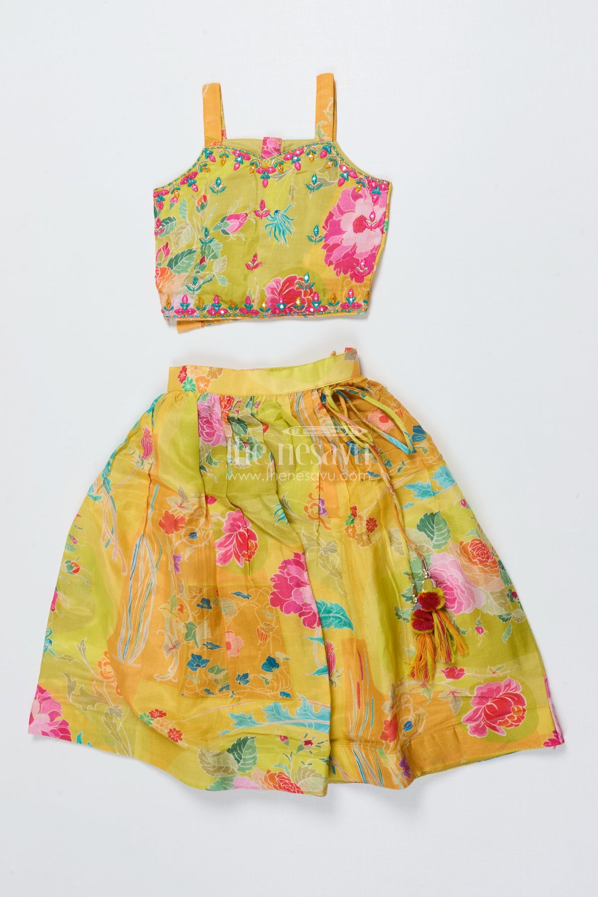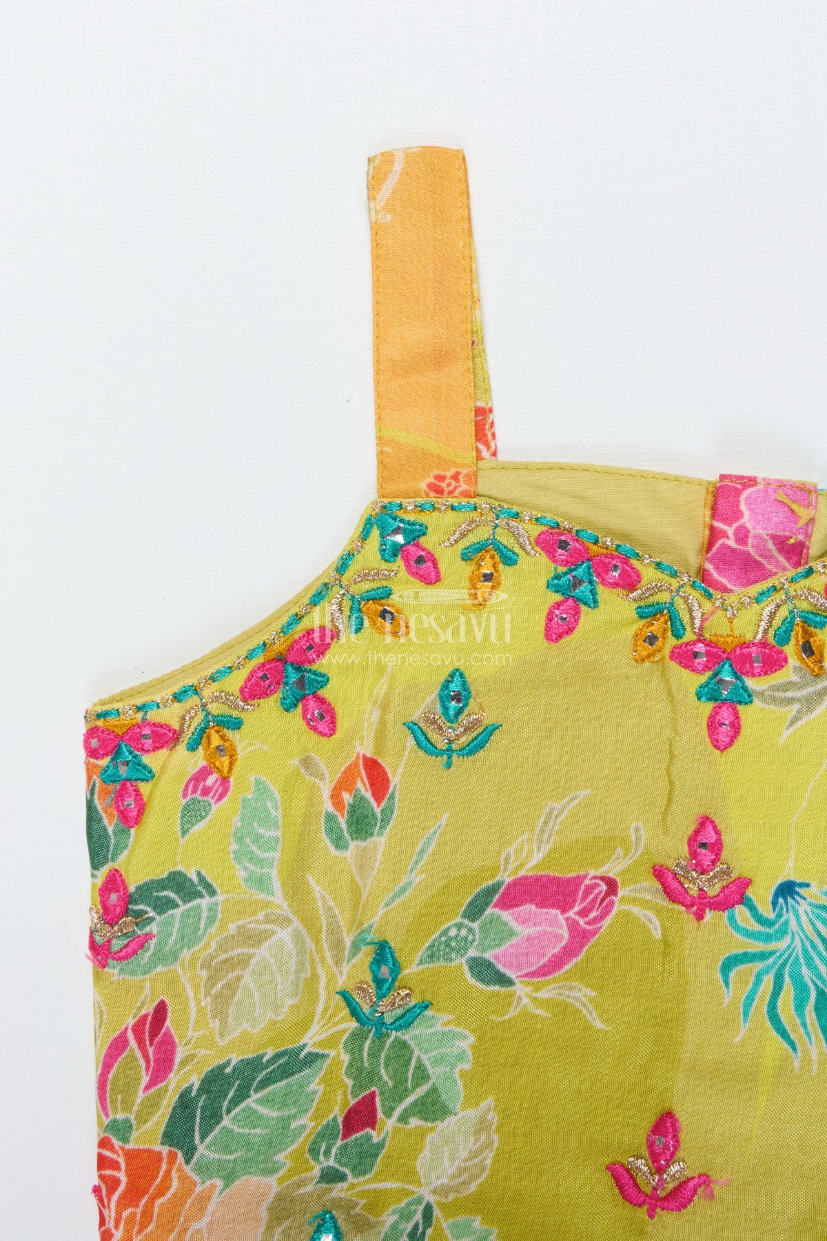 The Nesavu Girls Lehenga Choli Girls Printed Lehenga Choli for Festivals and Traditional School Days Nesavu 18 (2Y) / Green GL847A-18 Nesavu girls floral printed lehenga choli modal silk Navratri festive school events