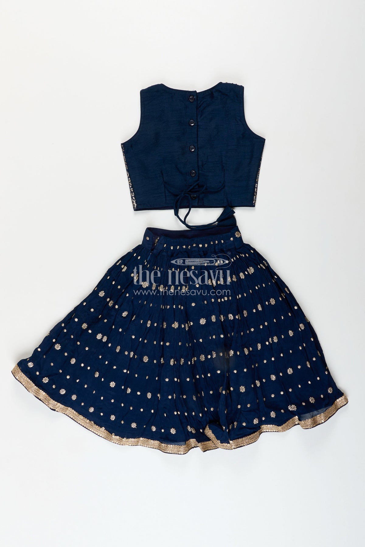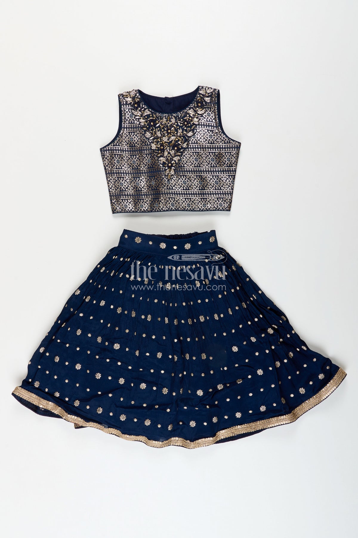 The Nesavu Girls Lehenga Choli Girls navy blue georgette lehenga choli with embroidered yoke for weddings Nesavu Nesavu girls navy blue georgette lehenga choli embroidered blouse weddings festive occasions