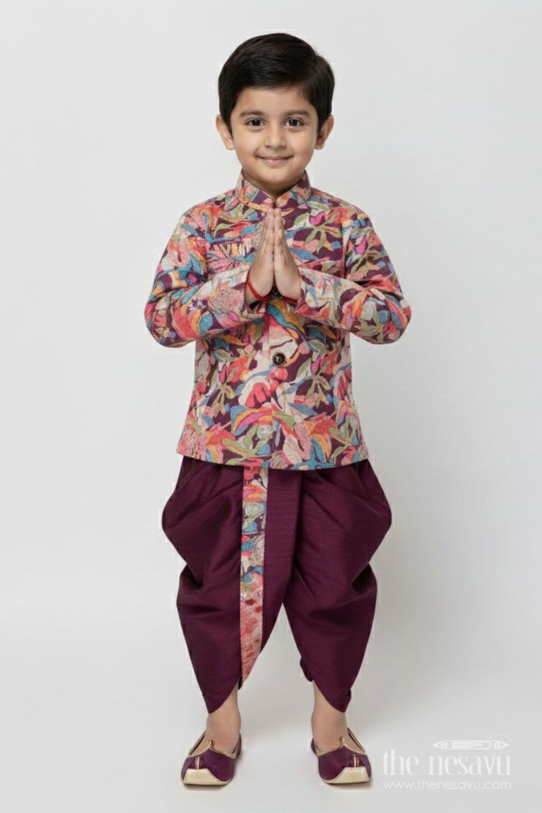 • This baby boy dhoti kurta set is crafted from soft viscose with vibrant digital prints
