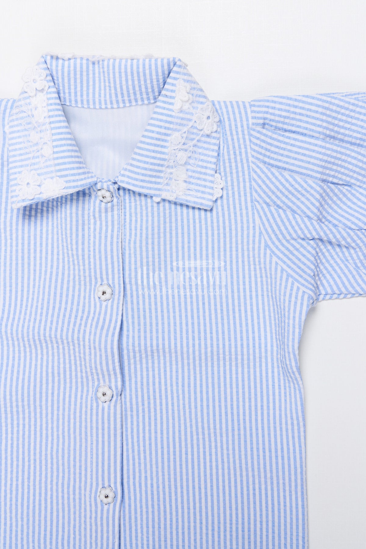 • The full-sleeve button-down top features delicate floral embroidery on the collar and cuffs