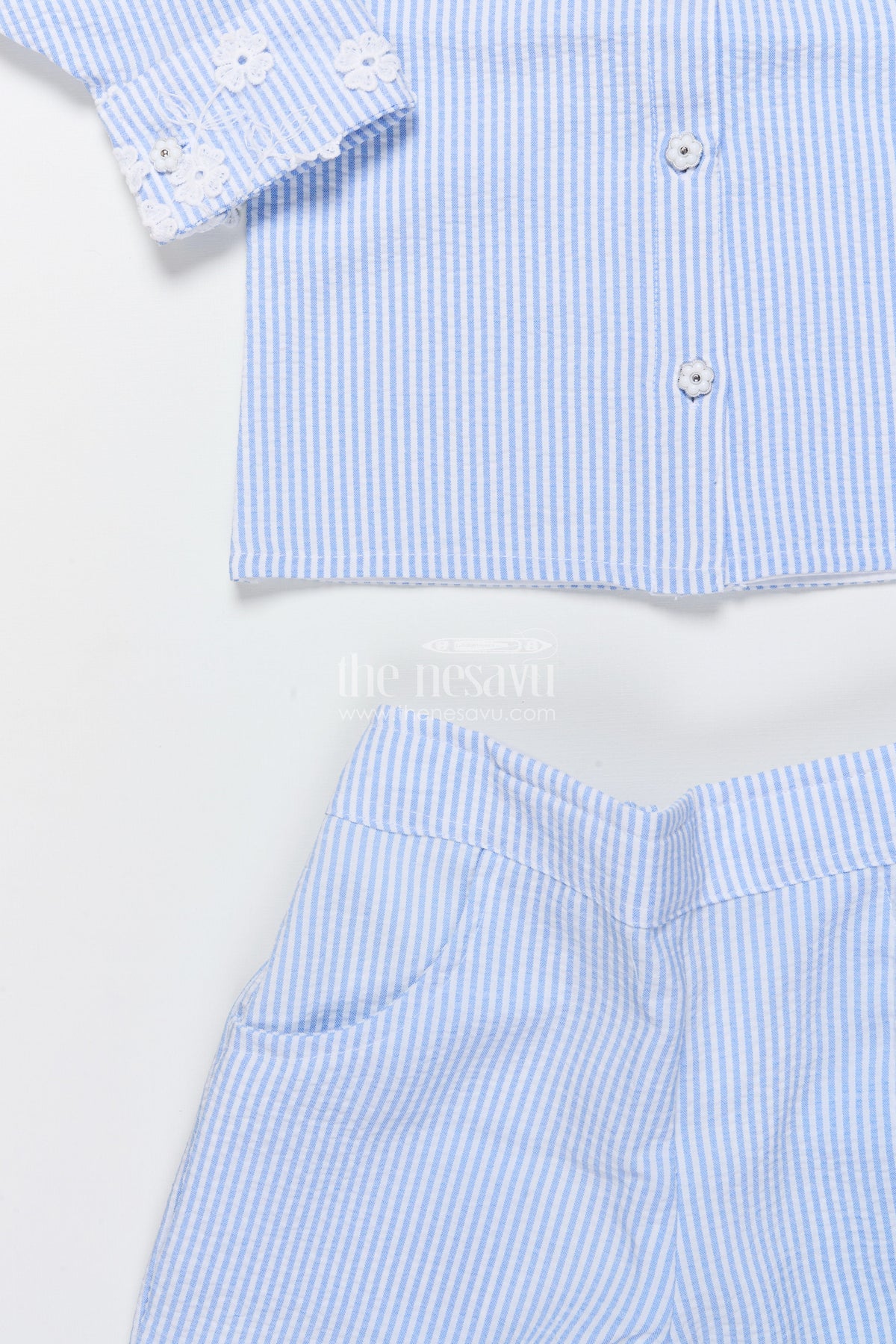 The Nesavu Girls Co-Ord Sets Girls Co-Ord Set with Floral Details for Festive School Days Nesavu 22 (4Y) / Blue GPS811C-22 Nesavu girls cotton blend co-ord set floral embroidery festive school functions