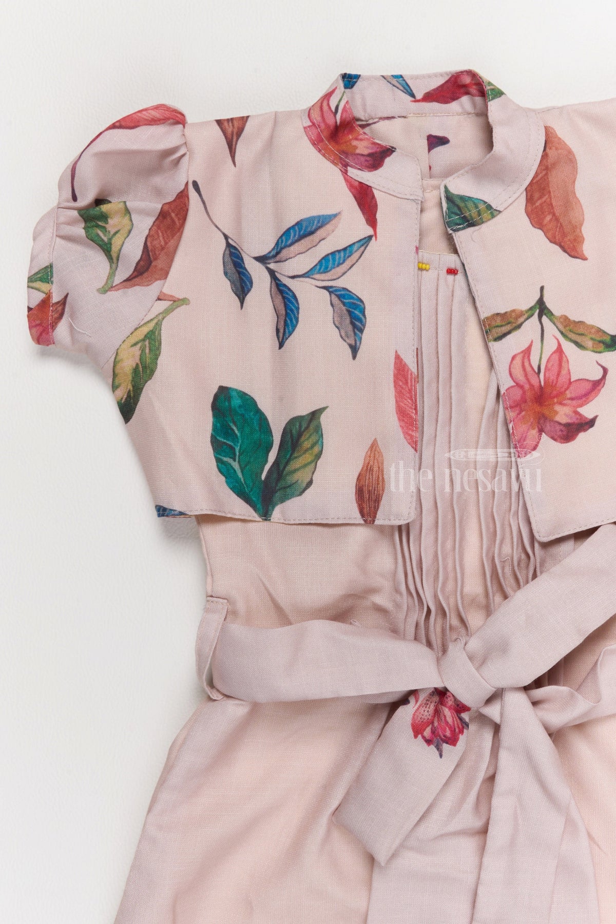 The Nesavu Girls Cotton Frock Elegant Girls Cotton One-Piece Frock with Floral Prints and Tie-Up Waist Nesavu 20 (3Y) / Beige GFC1573A-20 Girls Cotton One-Piece Frock Tie-Up Belt Floral Prints Nesavu